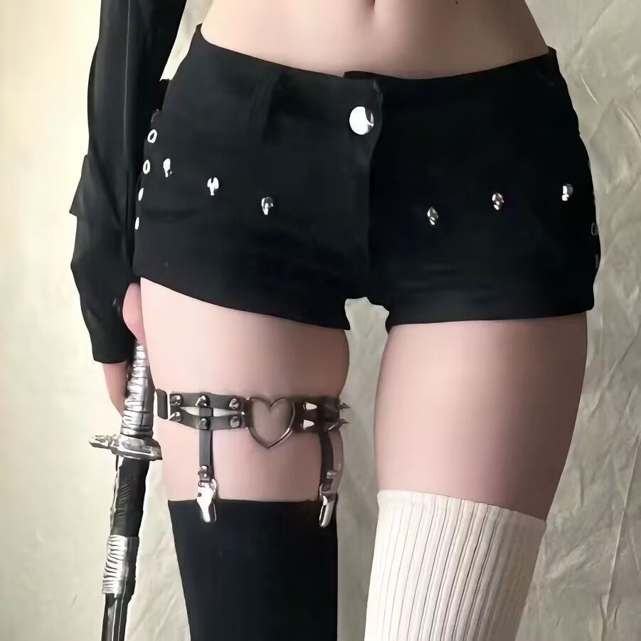 Harness de Coxa Alternativo Punk Gótico com Corrente Fina e Coração Spikes