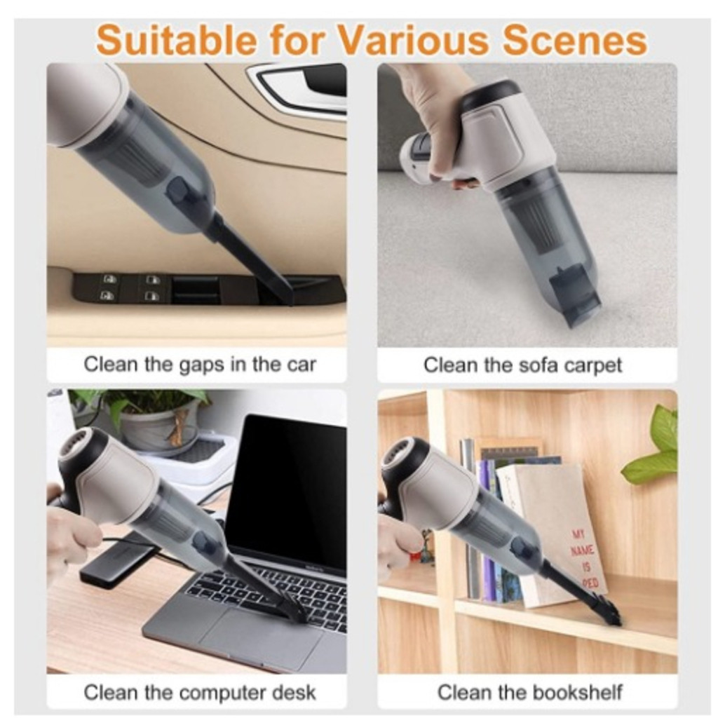 Aspirador Sem Fio 3 Em 1 Para Carro Bivolt 9000Pa Mini De Pó Casa E De Uso Duplo