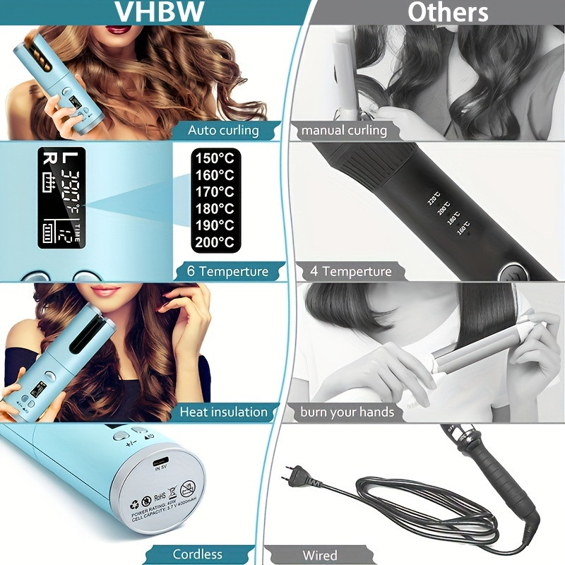 Modelador De Cachos Ferro Automático Sem Fio Com Bateria Recarregável Embutida Cerâmica