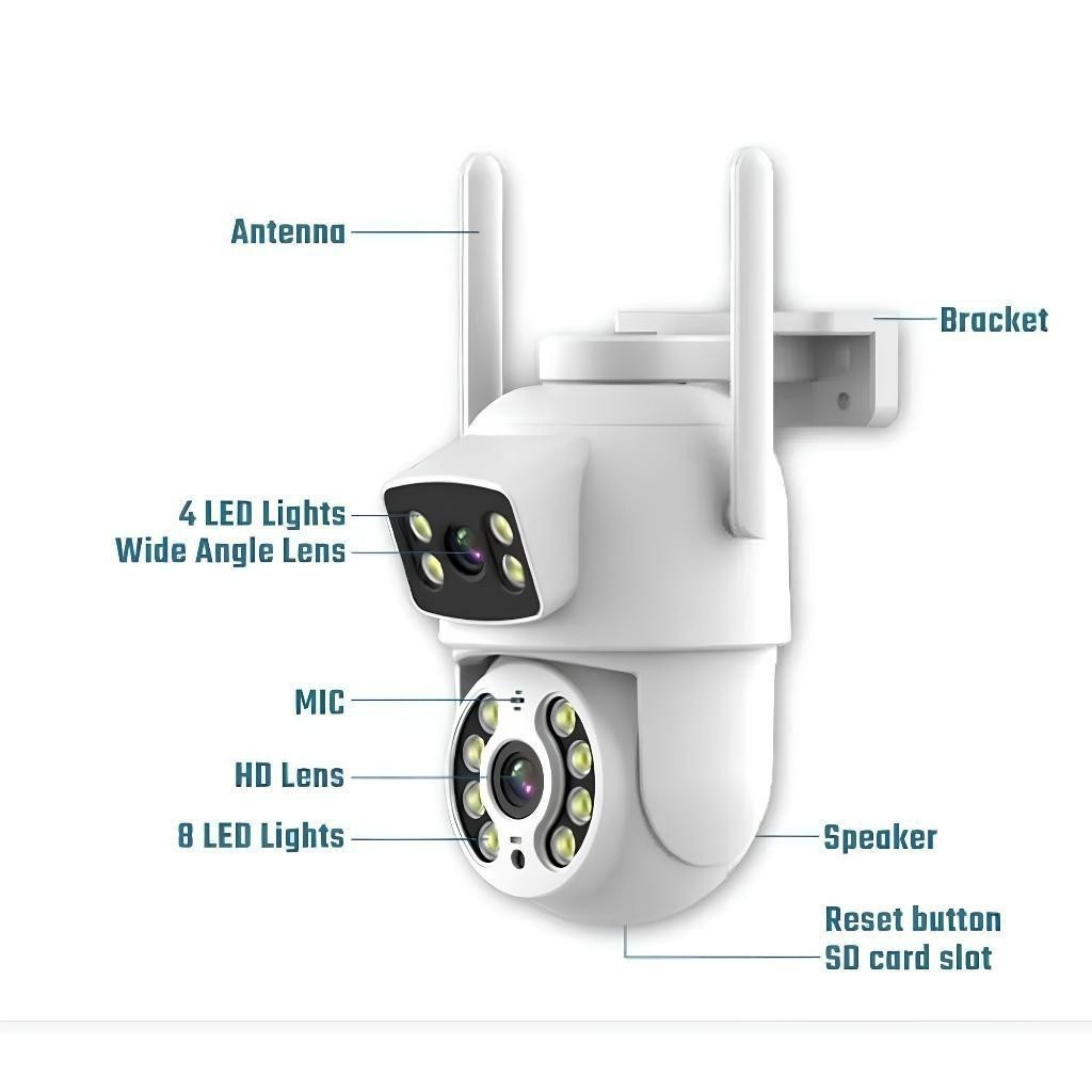 Câmera Dome IP Wireless PTZ de Dupla Lente Detecção de Humanos com IA Segurança Residencial