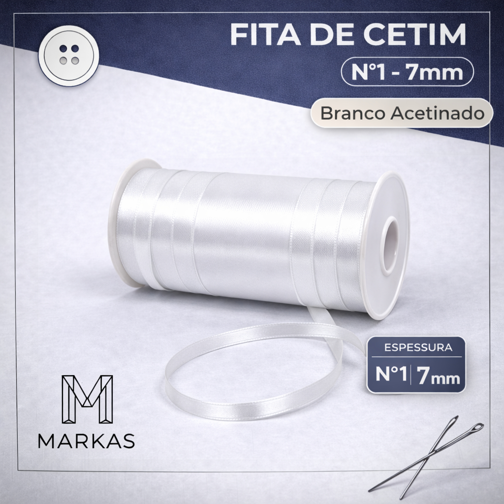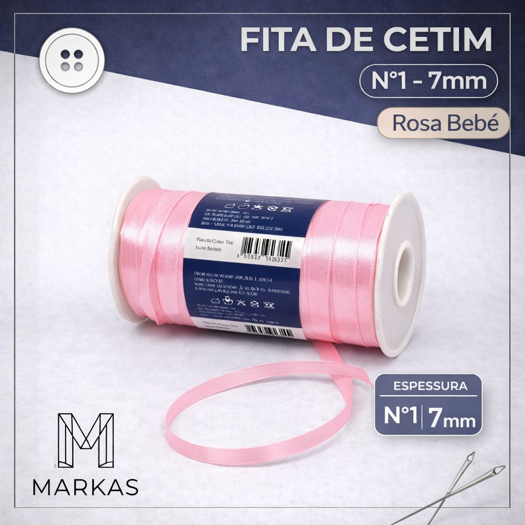 Fita de Cetim Nº1 – 7mm Rolo 100m | 100% Poliéster | Cores à Escolha para Laços, Artesanato e DIY