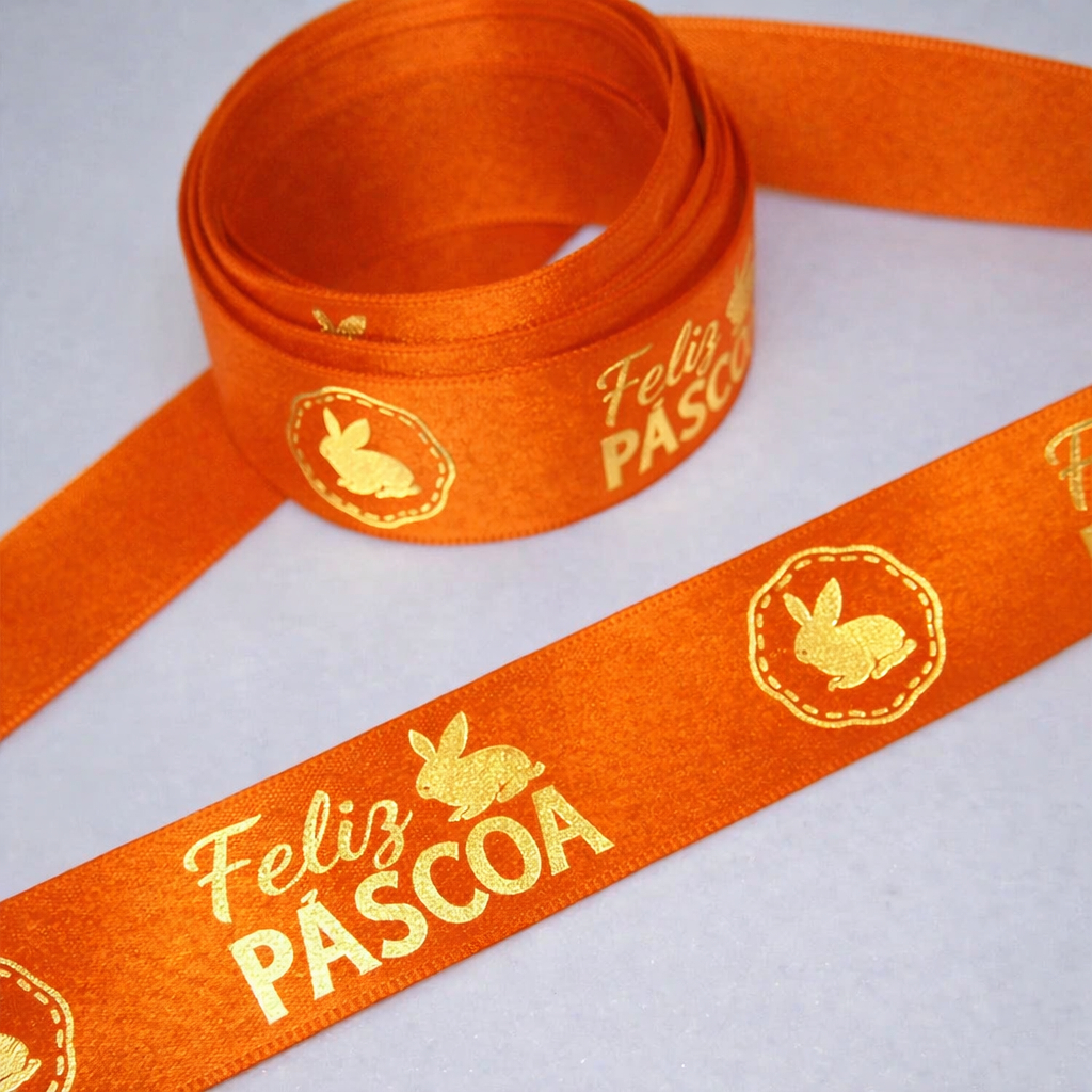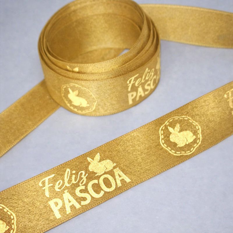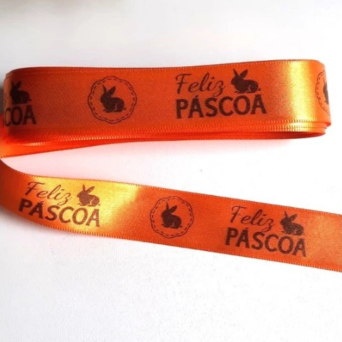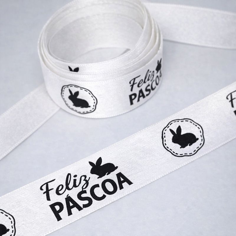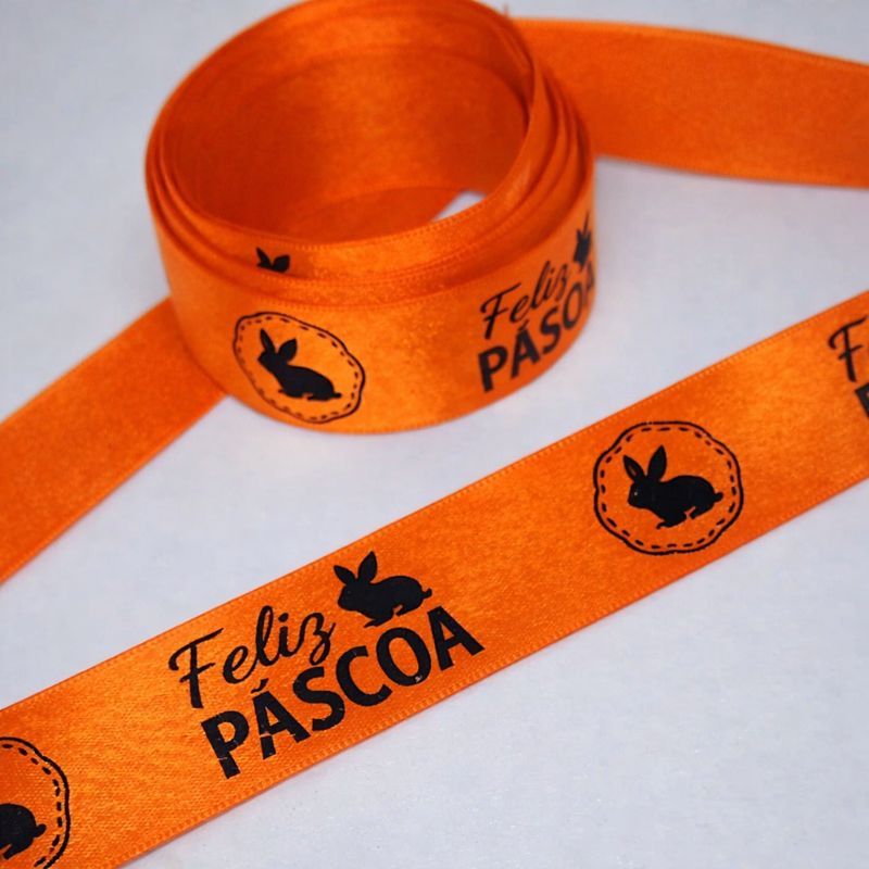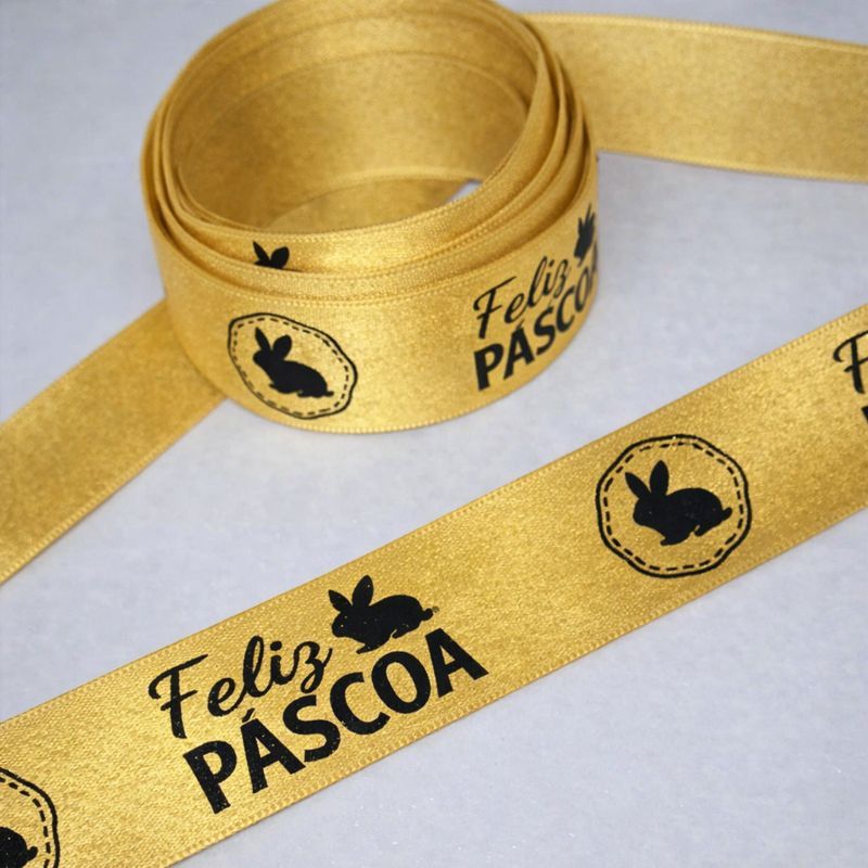 Fita Cetim Feliz Páscoa N°5 e N°3 Até 50m Estampada - Ovo de Pascoa, Presentes, Artesanato