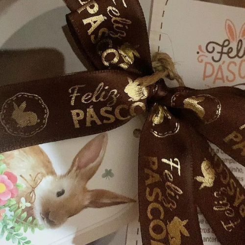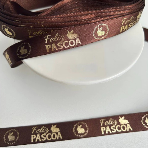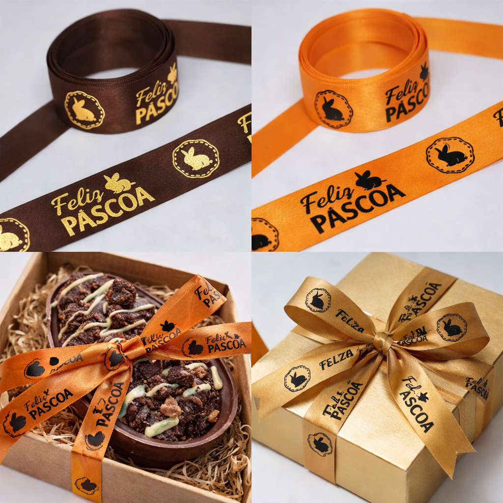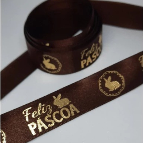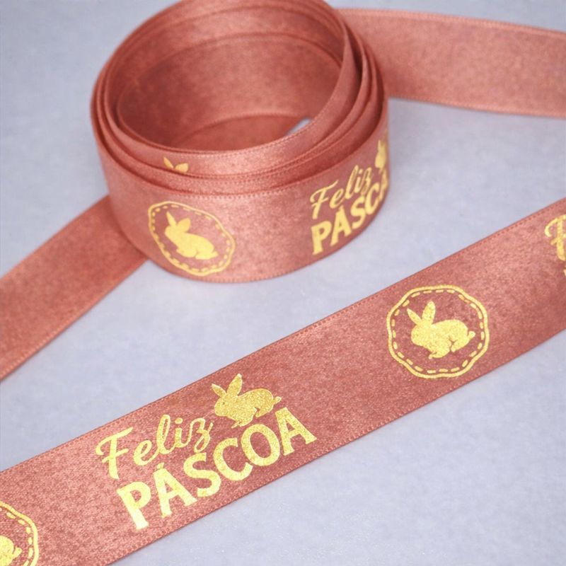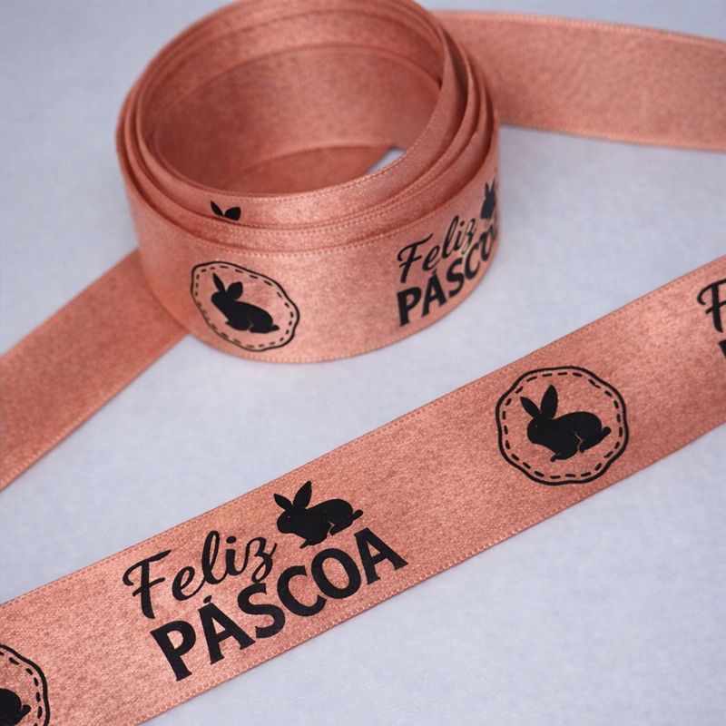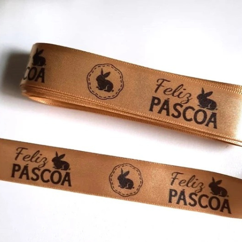 Fita Cetim Feliz Páscoa N°5 e N°3 Até 50m Estampada - Ovo de Pascoa, Presentes, Artesanato
