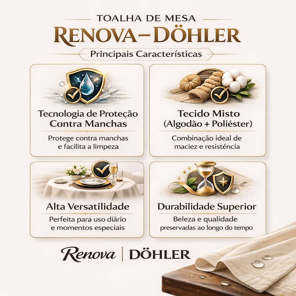Toalha de Mesa Retangular 6 Lugares Döhler Antimanchas Fácil de Limpar 140 X 210cm