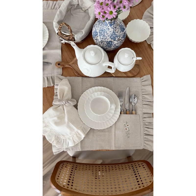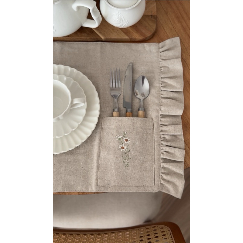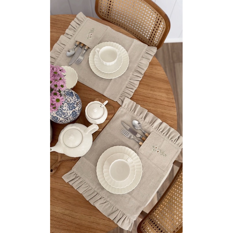 Lugar americano de bolsinho margarida Linho Cru ( 2 Lugares a mesa )