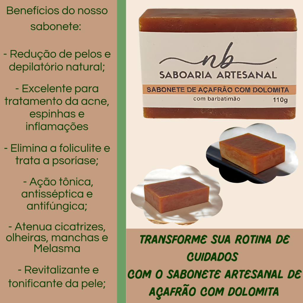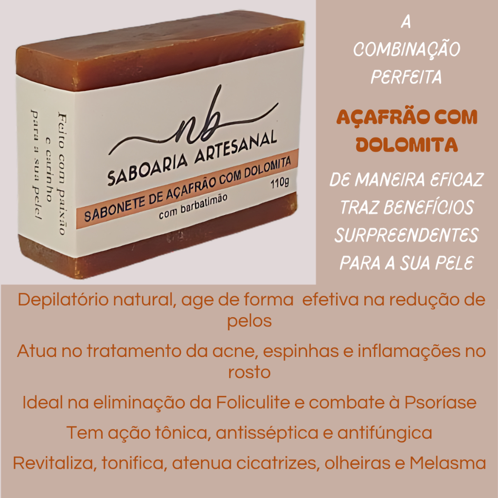 Sabonete Açafrão com Dolomita Depilatório Bactericida Clareador