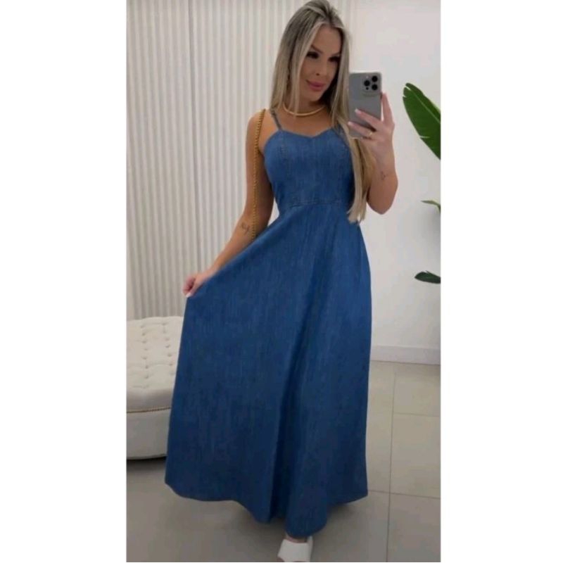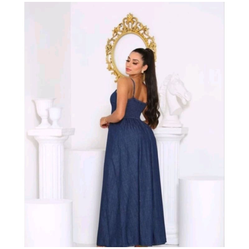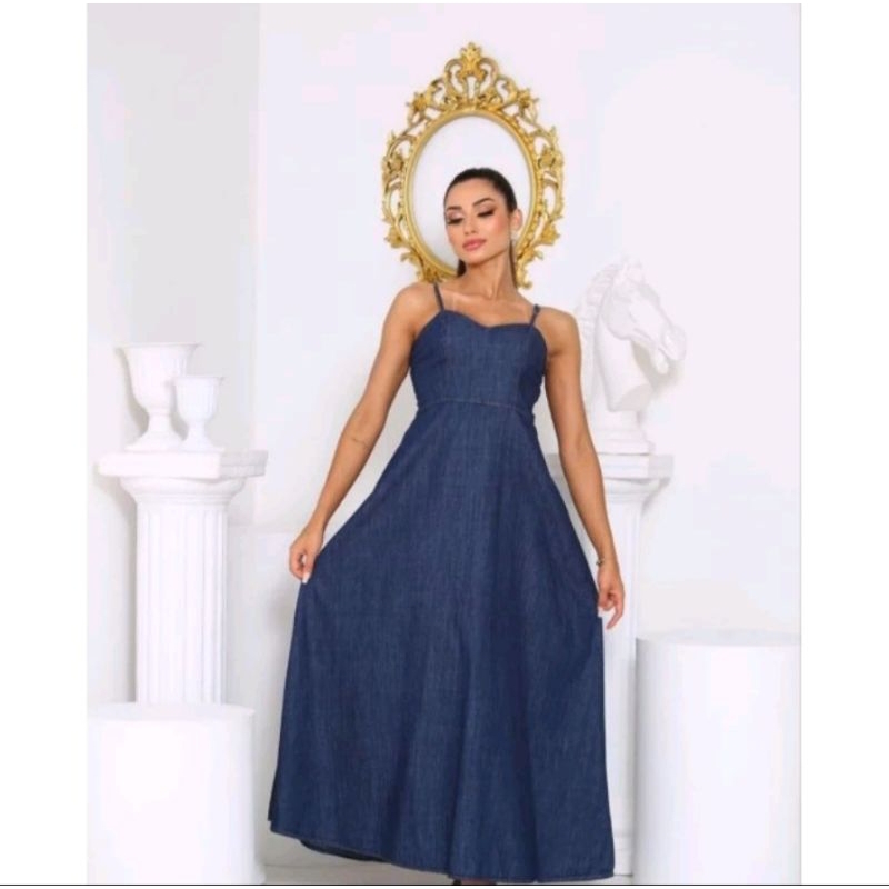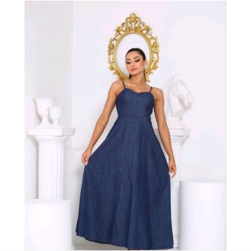 VESTIDO JEANS LONGO COM ALÇA REGULÁVEL
