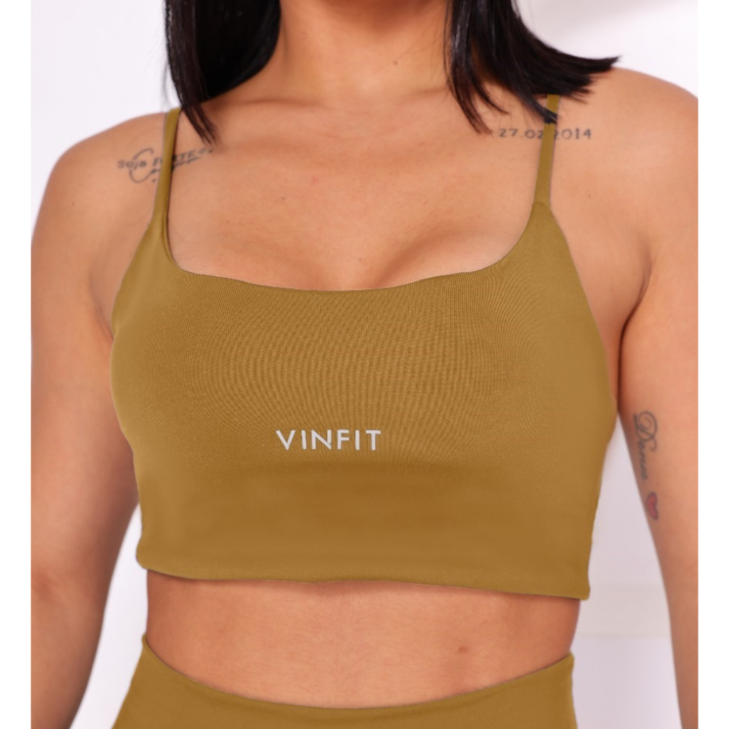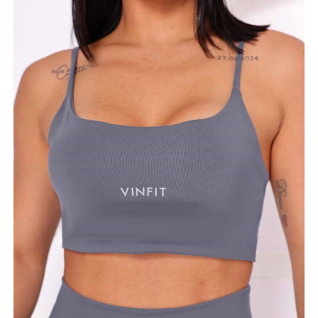Top Academia Fitness Duplo Poliamida alça fina com Sustentação