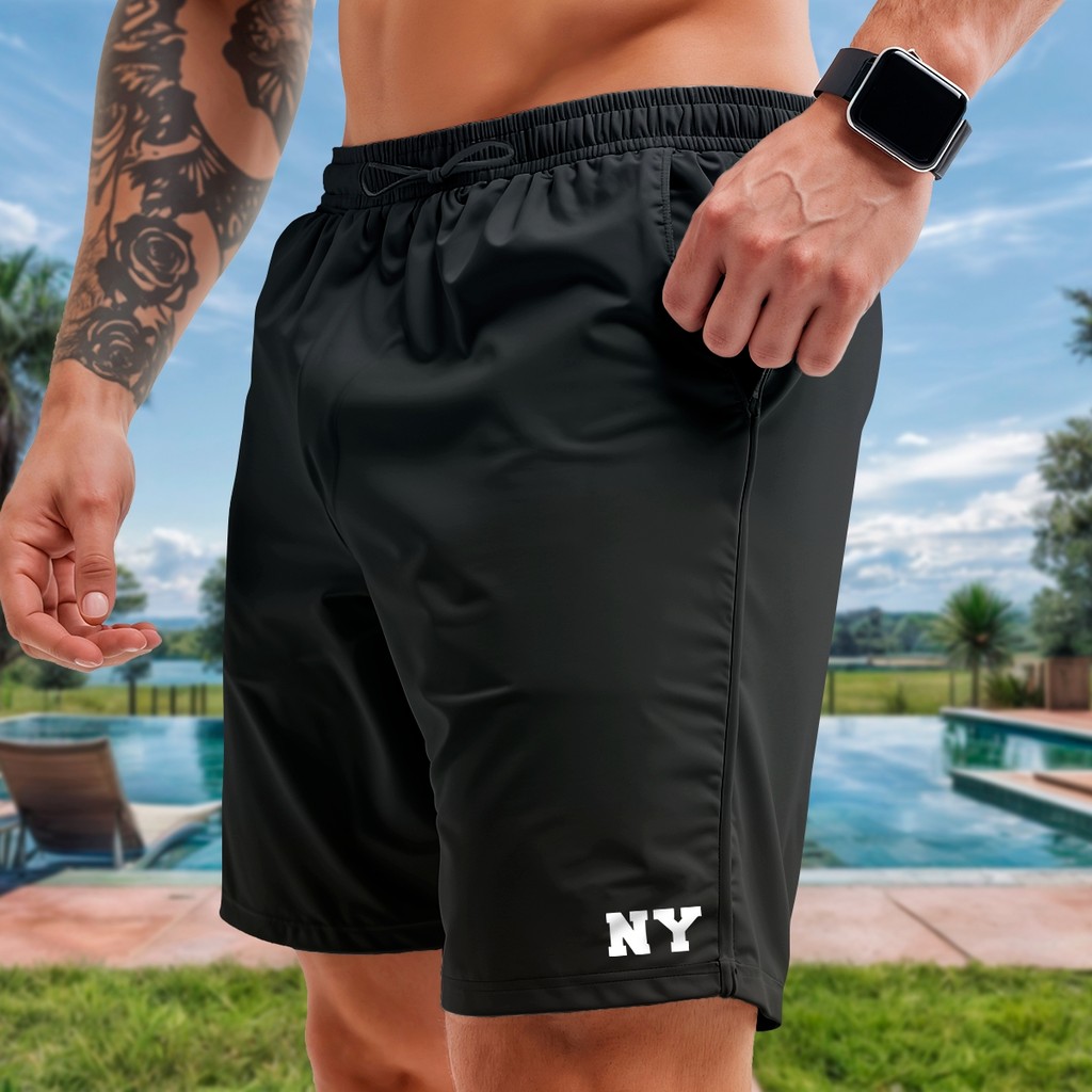 Short Praia Bermuda New York Masculina Shorts Tactel com Elastano Estampado NY