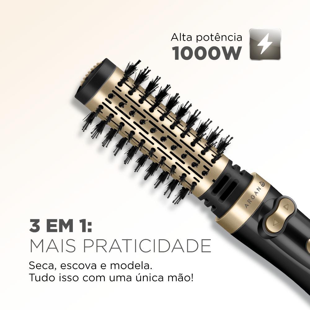 Escova Rotativa Argan Mondial Preto e Champagne 1000W ER-11-AR