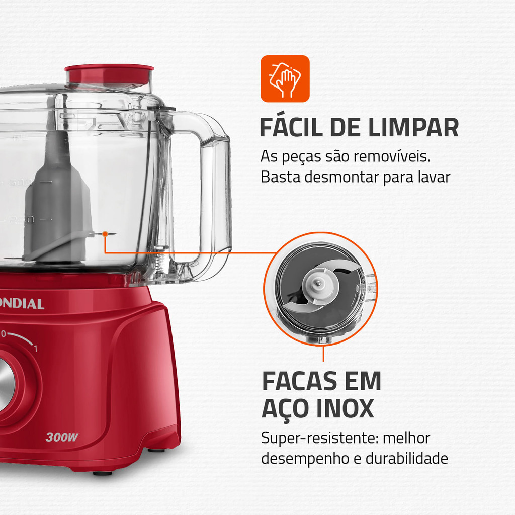 Mini Processador Turbo Pratic Mondial Vermelho 300W MP-16-R