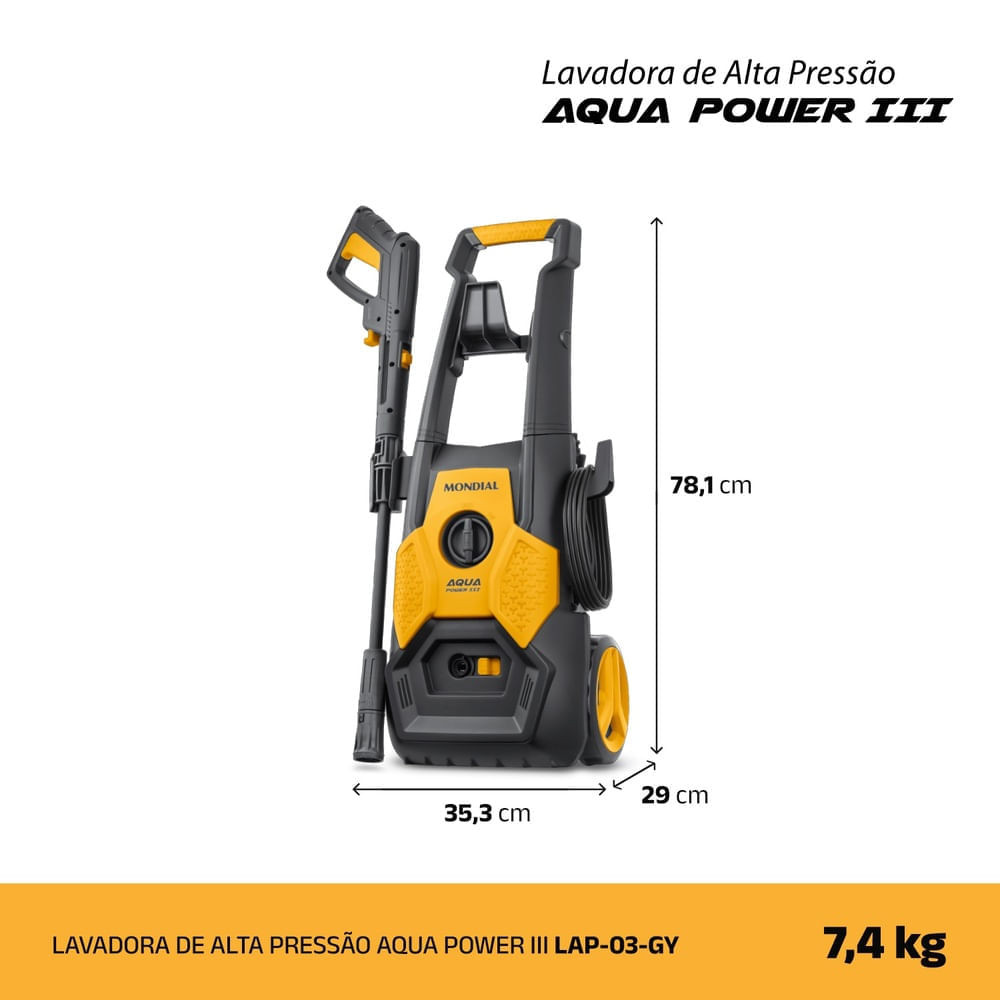 Lavadora de Alta Pressão Aqua Power III Mondial 1800W - LAP-03-GY
