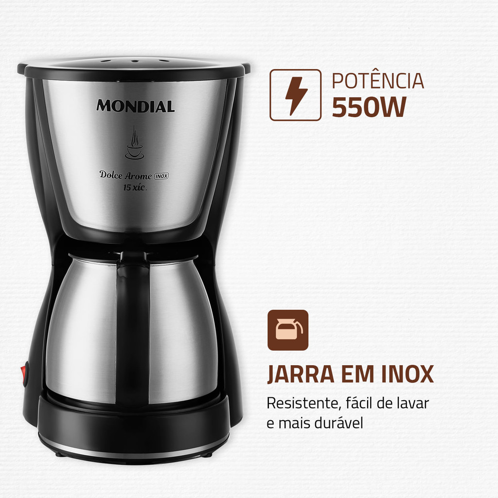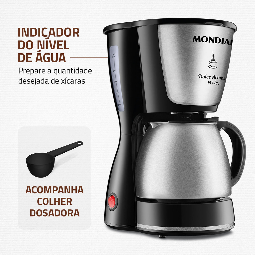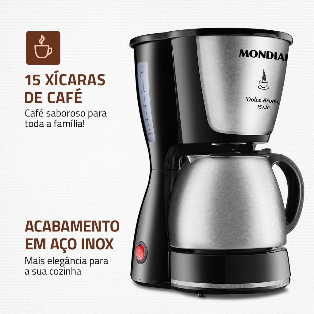Cafeteira Elétrica Dolce Arome Mondial Preto e Inox 550W C-34JI-15X