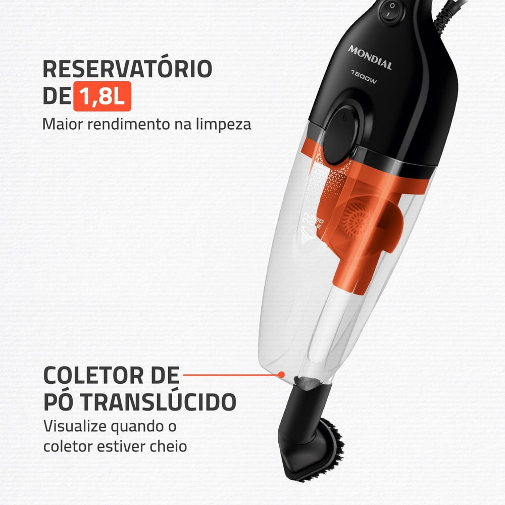 Aspirador de Pó Turbo Cycle Mondial Preto e Laranja 1500W- AP-40-B