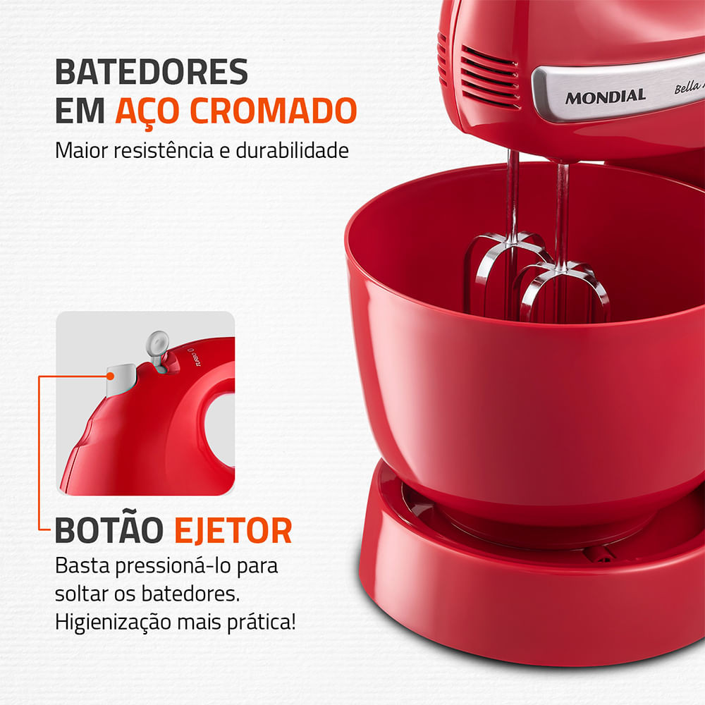 Batedeira Bella Massa Mondial Vermelho e Inox 500W B-29 NP