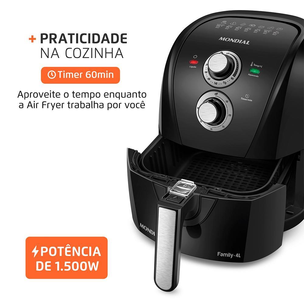 Fritadeira Sem Óleo Air Fryer 4L Mondial Preto/Prata 1500W - AFD-40-BFS