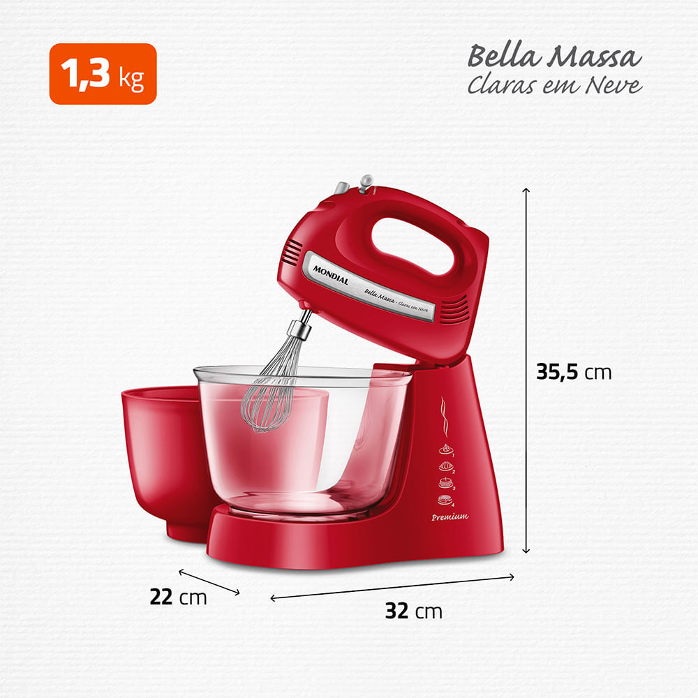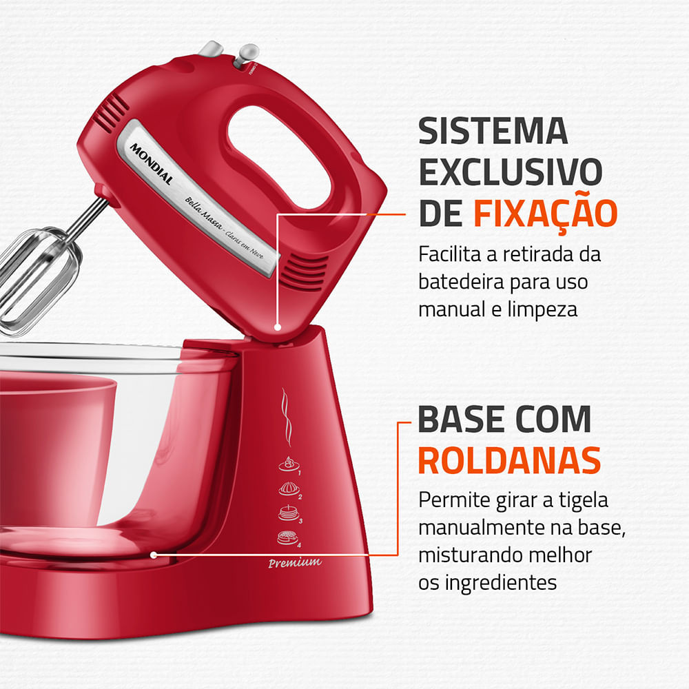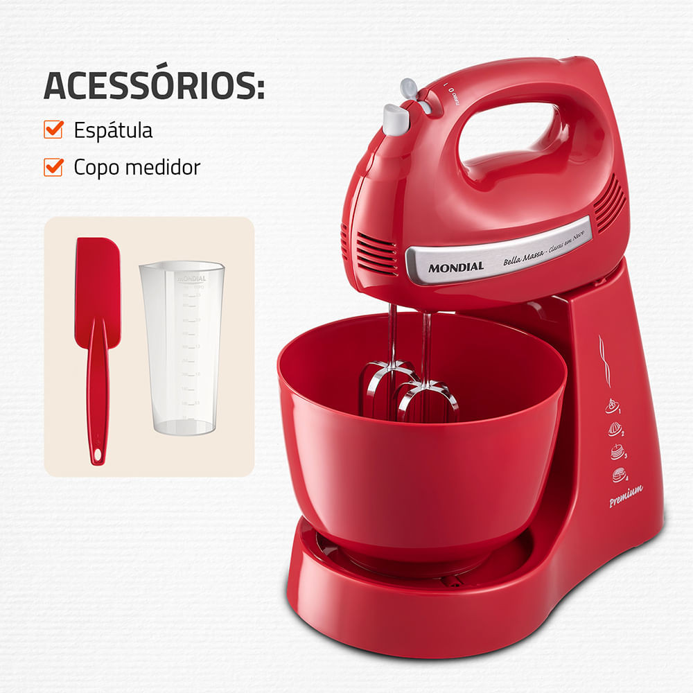 Batedeira Bella Massa Mondial Vermelha e Inox 500W B-55-R