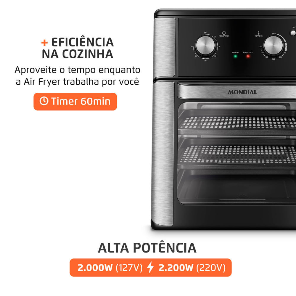 Fritadeira Air Fryer Forno Oven 12L Mondial Preto 2000W - AFON-12L-AB