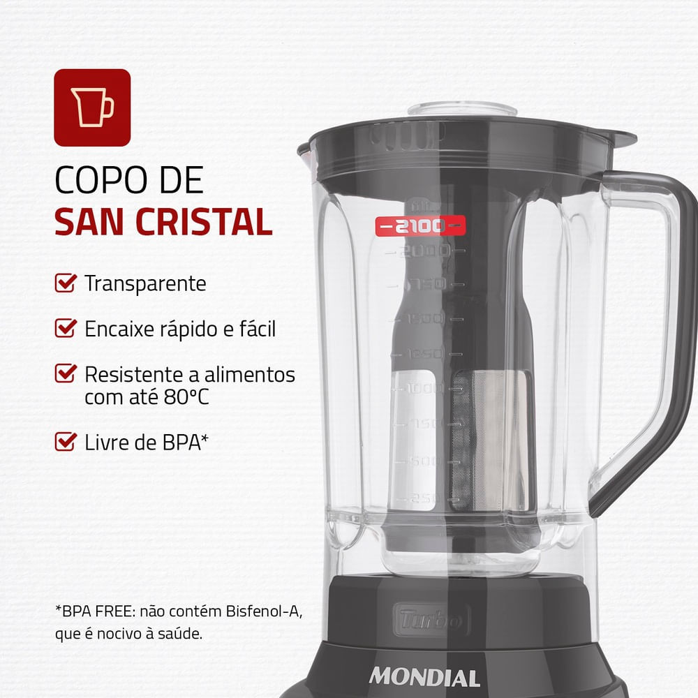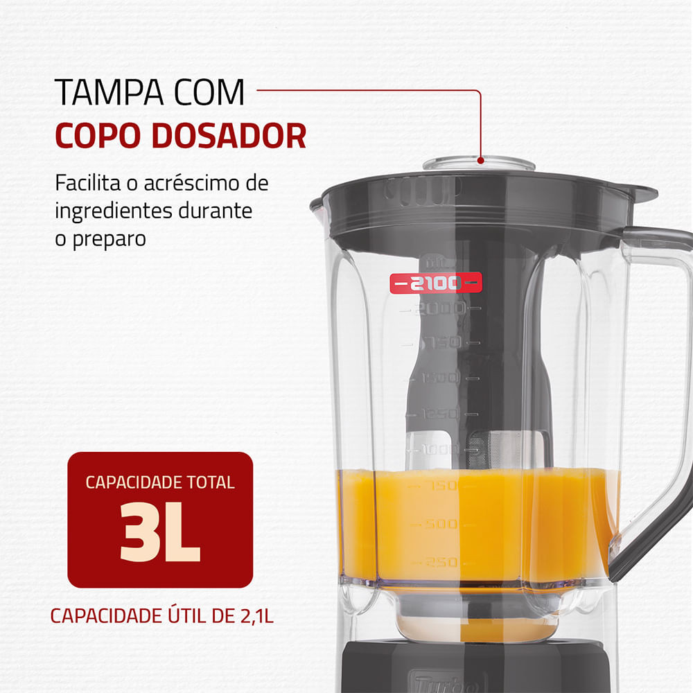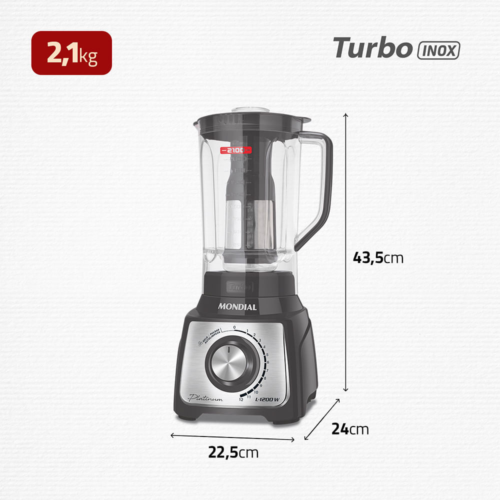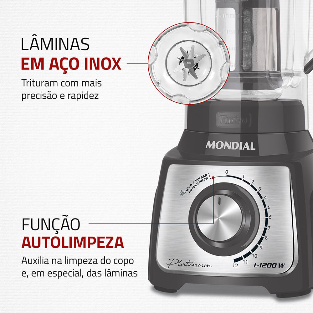 Liquidificador Turbo Platinum Mondial Grafite e Inox 1200W L-1200 PI