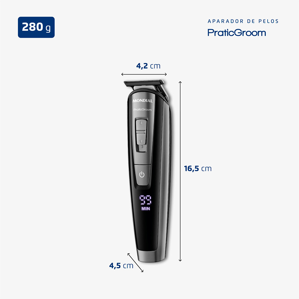 Aparador de Pelos PraticGroom Mondial Preto 6W Bivolt - BG-09