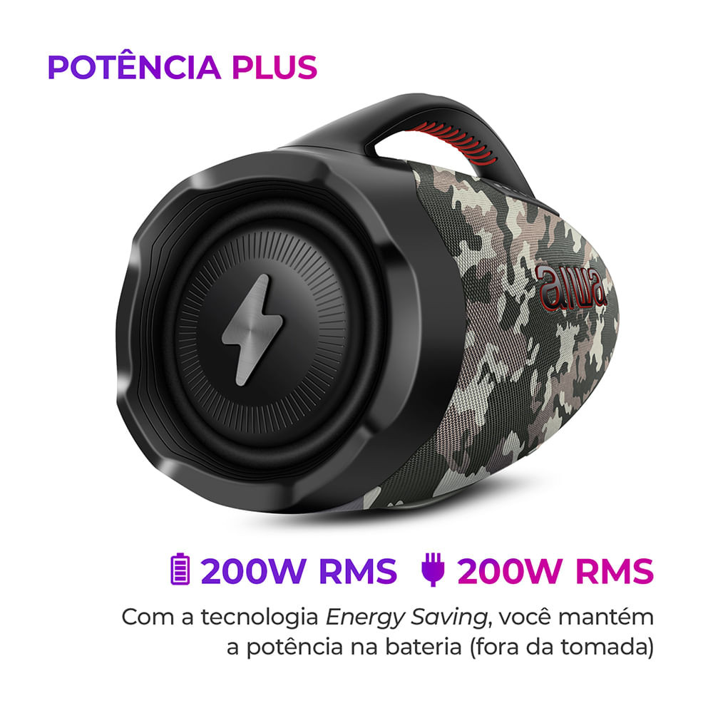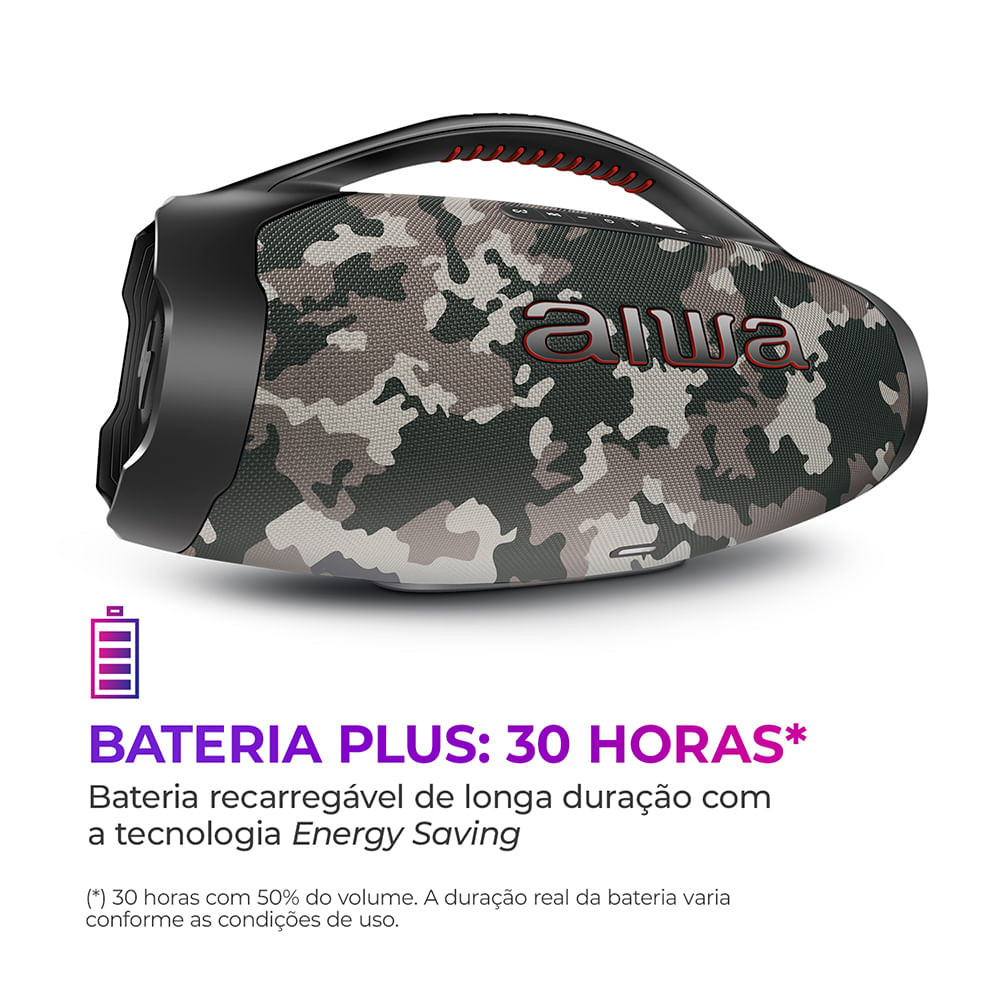 Caixa de Som Boombox Plus AIWA BBS-01-BG 200W Bluetooth 30H IP66 USB Cinza