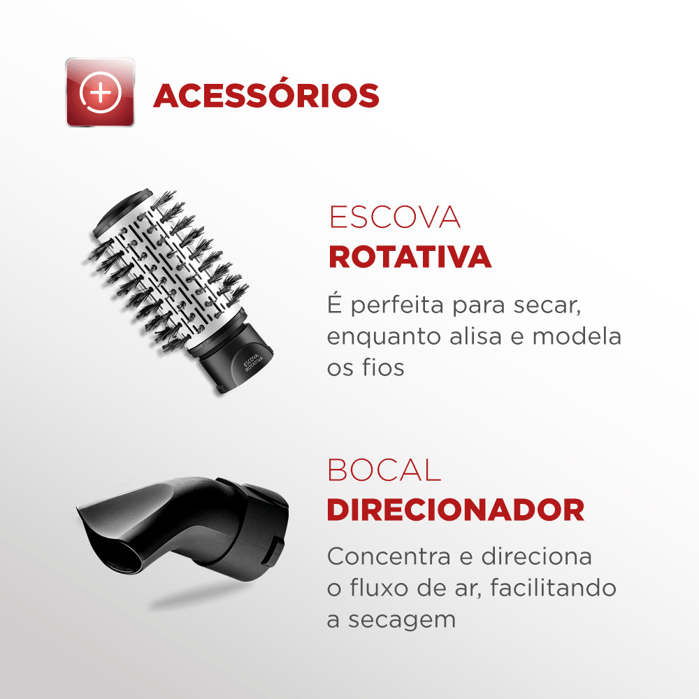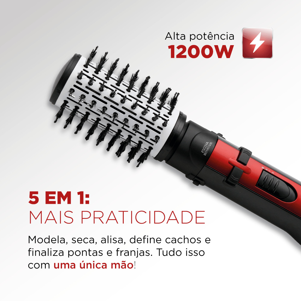 Escova Rotativa Ceramic Íon Turbo Mondial Vermelho e Preto 1200W ER-09