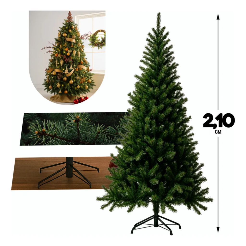 Árvore de Natal Verde 2,10m com 650 Galhos Pinheiro Grande Cheio Volumoso e Perfeito para Decoração