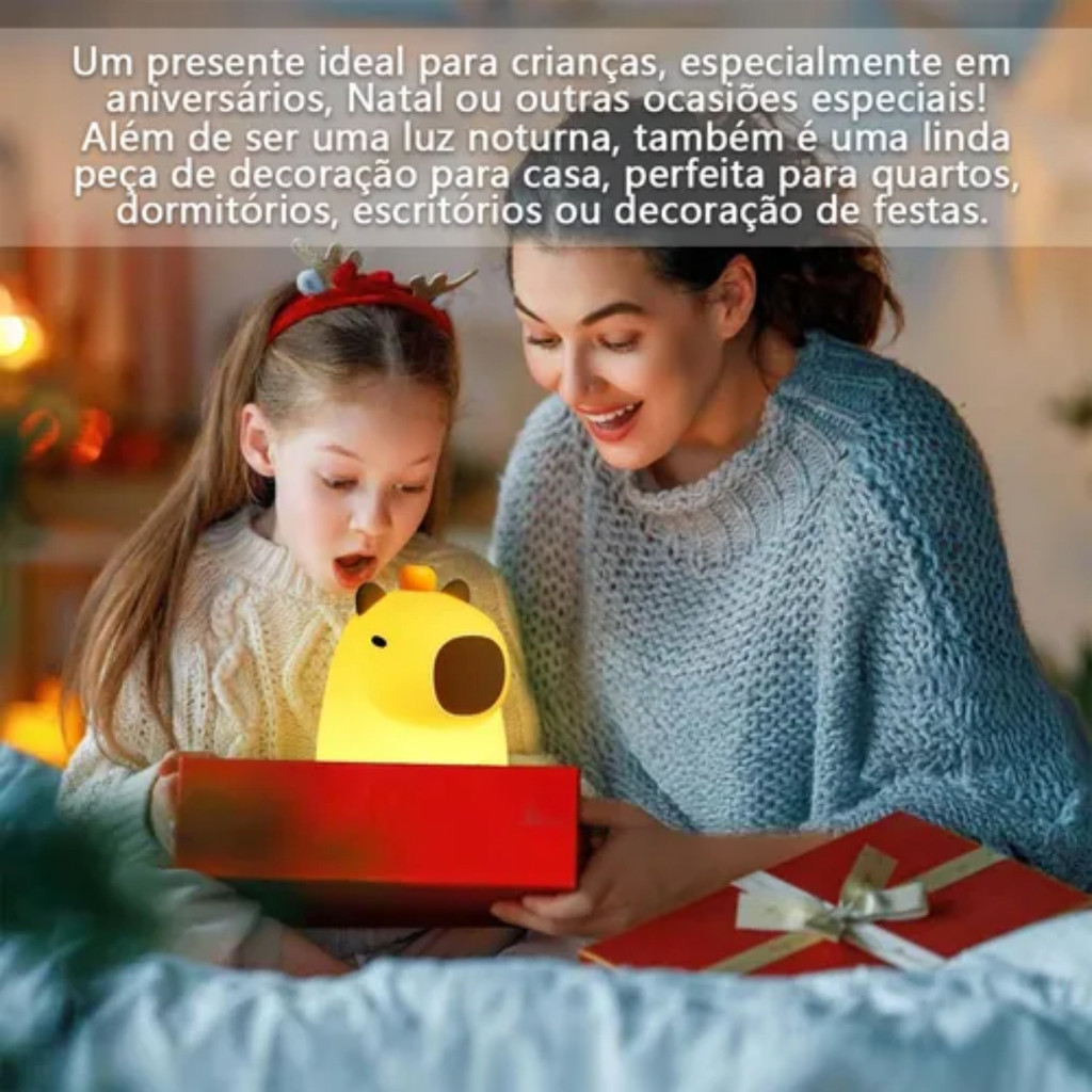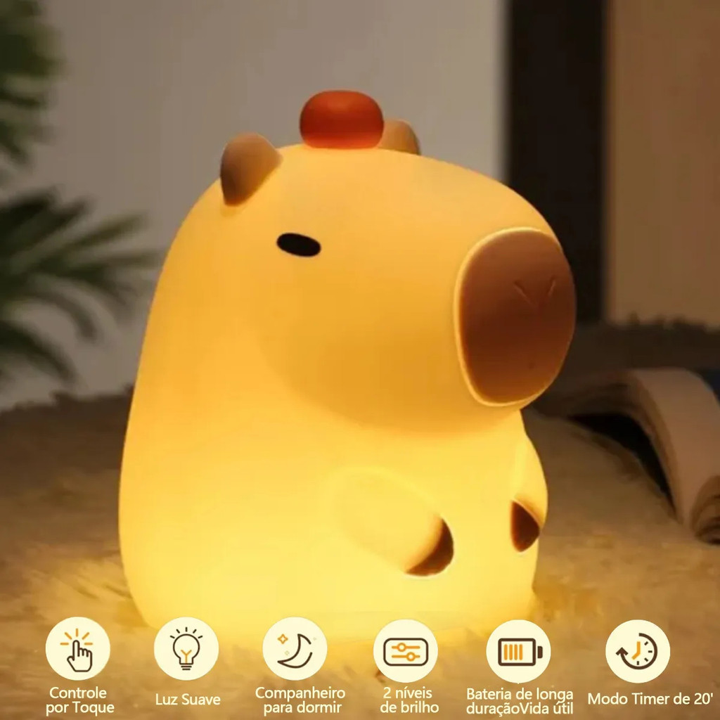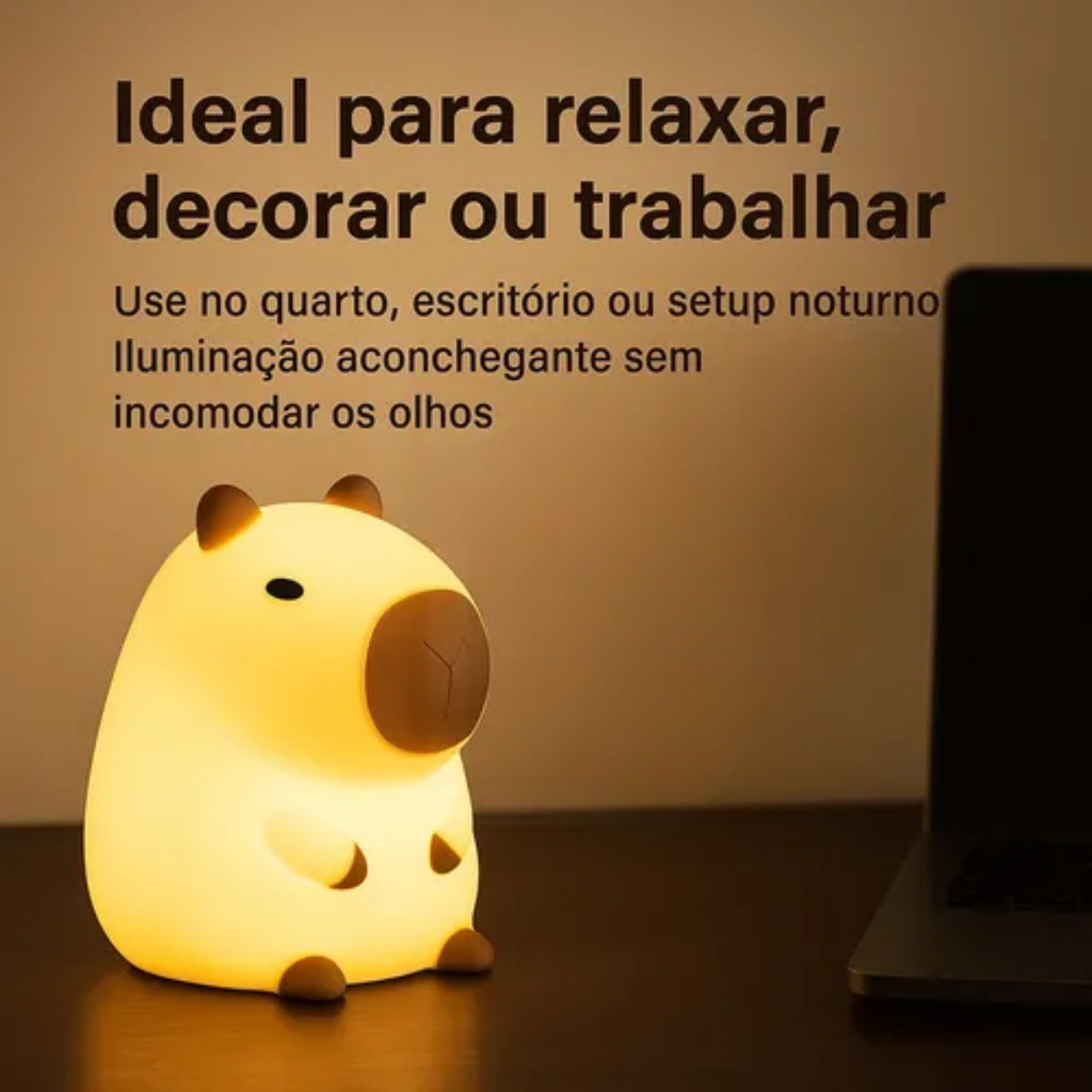 Luminária Capivara LED Abajur Decorativo 3D Relaxante Luz Amarela Suave USB Infantil Quarto