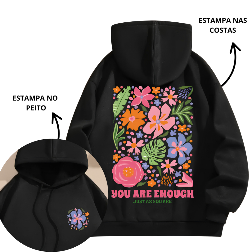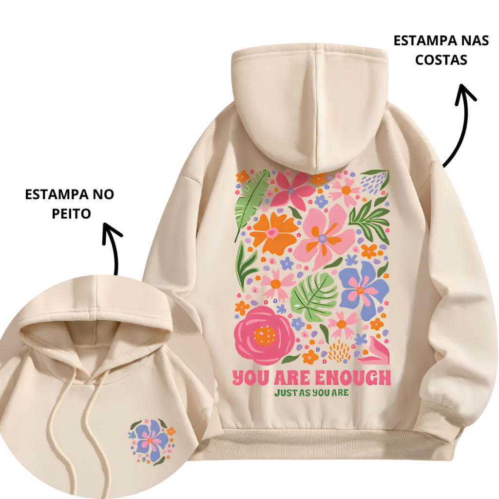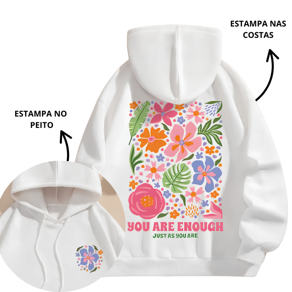 Blusa Moletom Capuz Canguru Flanelado Feminino Casual Algodão Básico Estampa Inverno