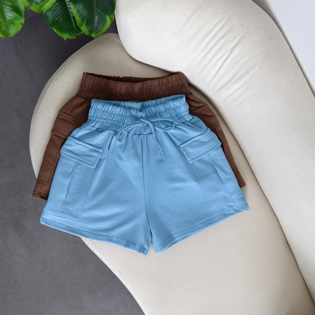 Kit 2 Peças Short Cargo Feminino Moletom Moletinho Shortinho Soltinho Confortável Algodão