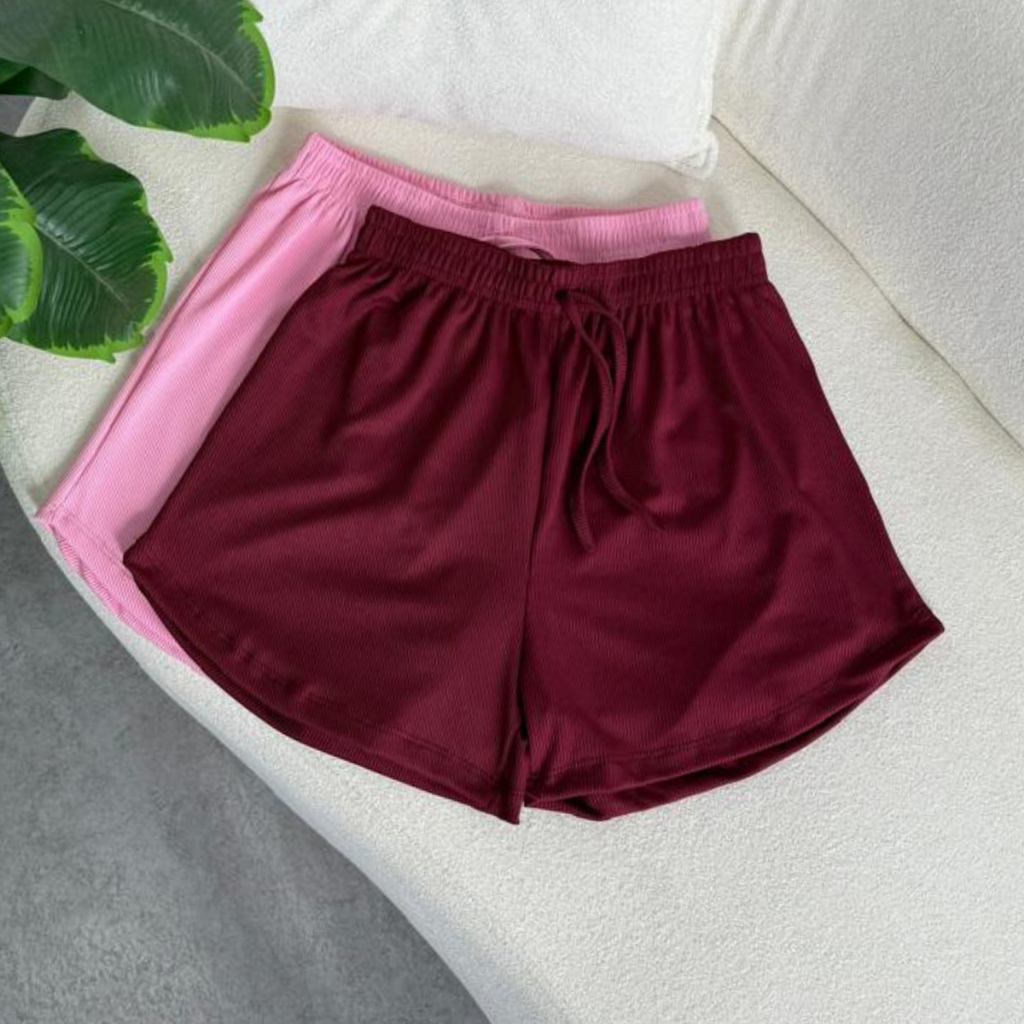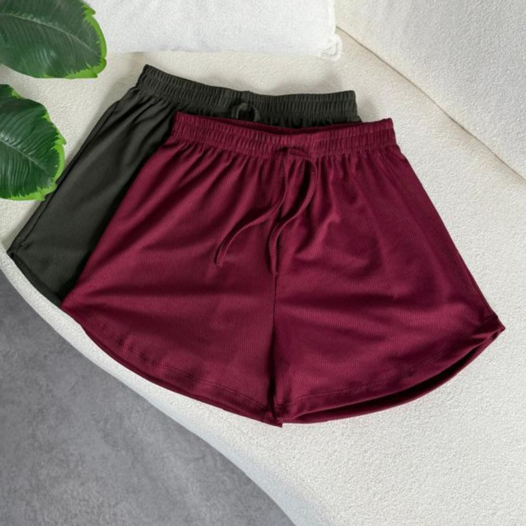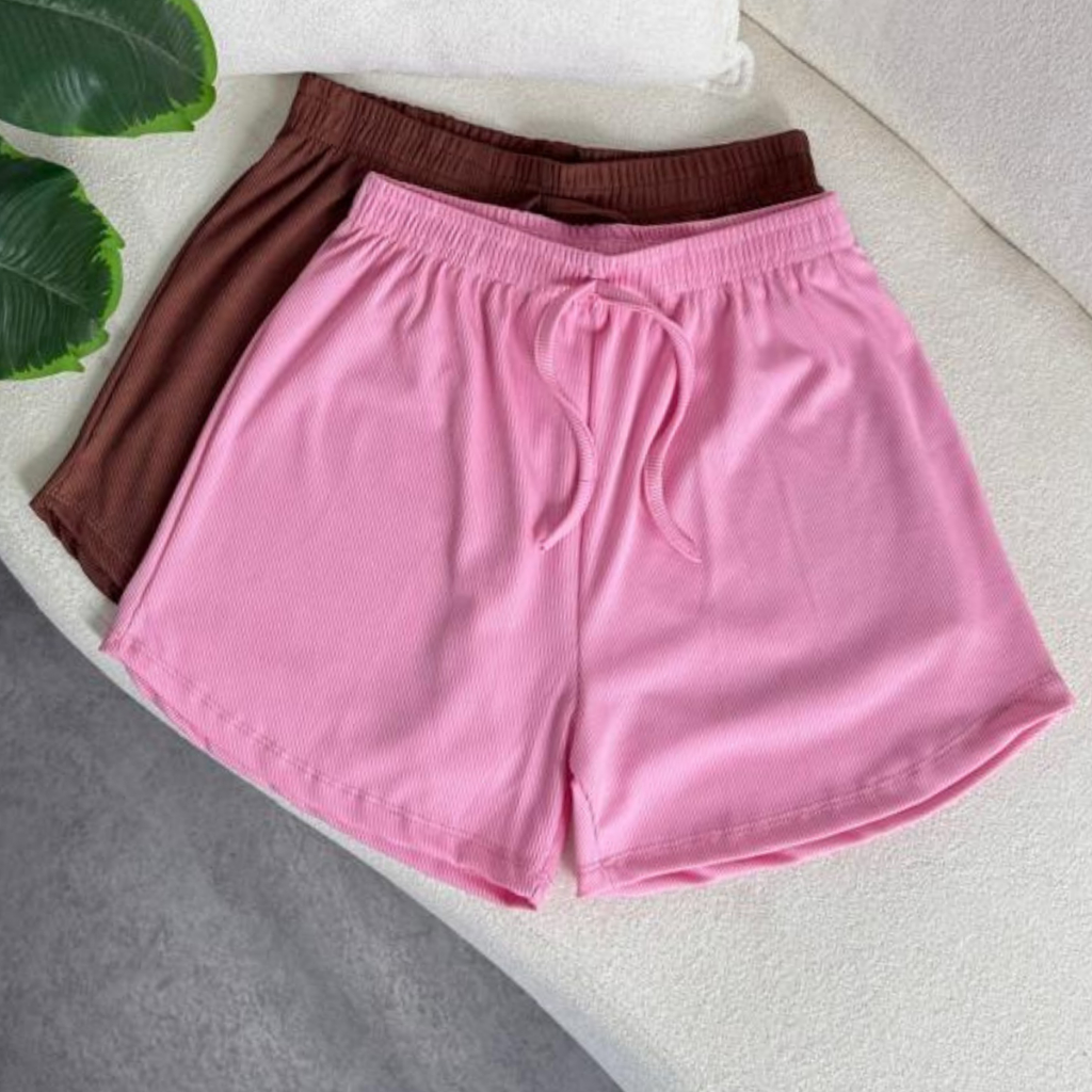 Kit 2 Peças Short Feminino Tecido Canelado, Confortável, Com elástico na cintura cores Tendências
