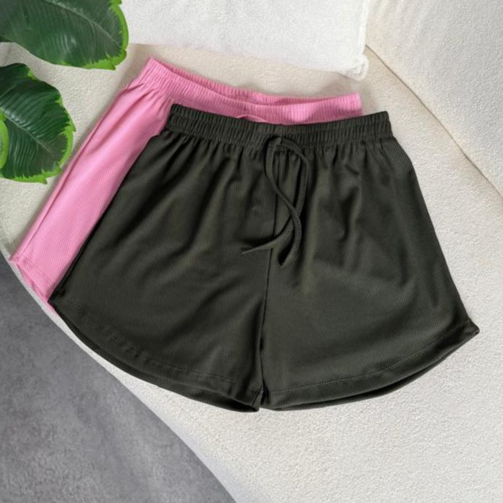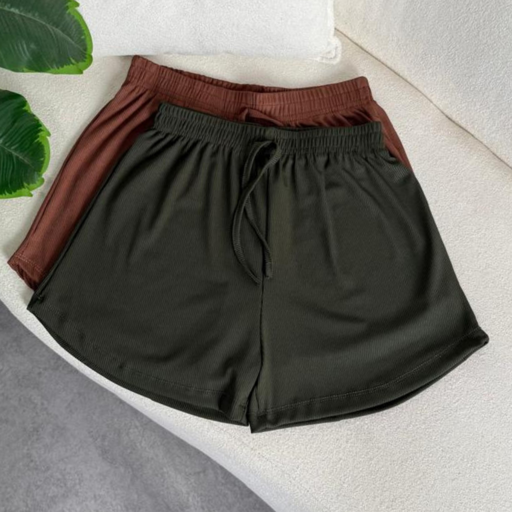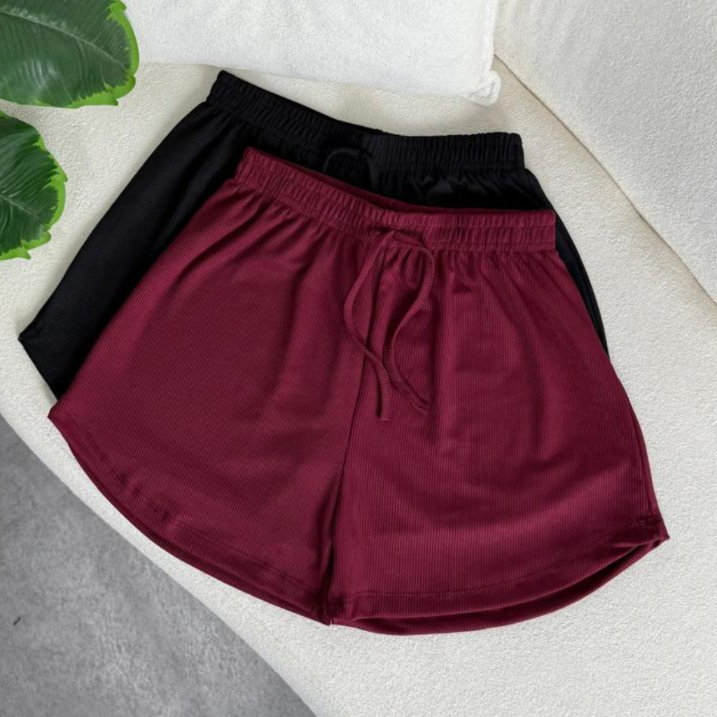 Kit 2 Peças Short Feminino Tecido Canelado, Confortável, Com elástico na cintura cores Tendências