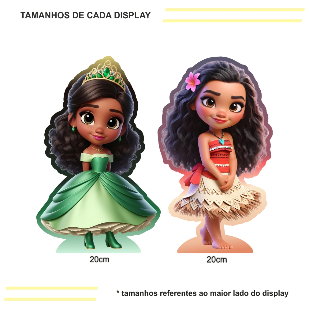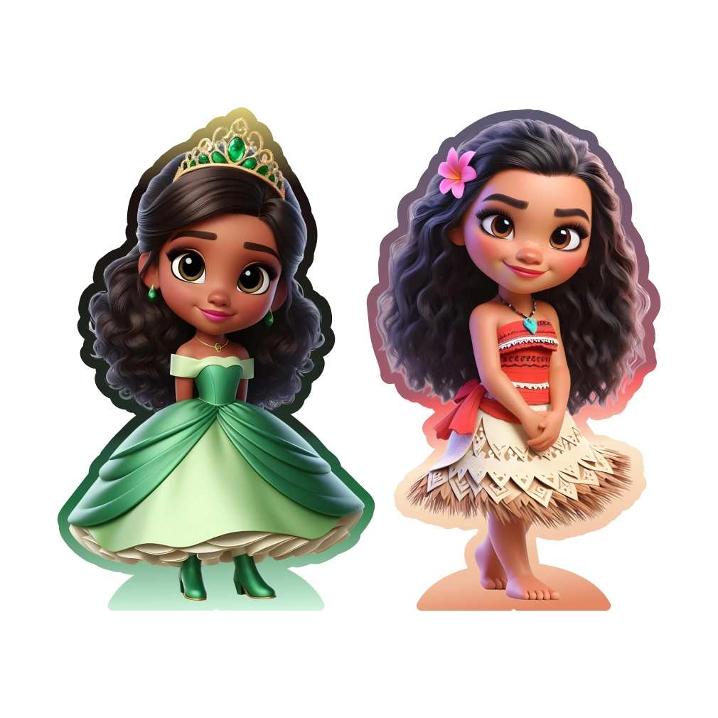 Kit de Display 2 peças de 20cm para Decoração de Festa Princesas Cute 3D Moana MDF Cortado a Laser