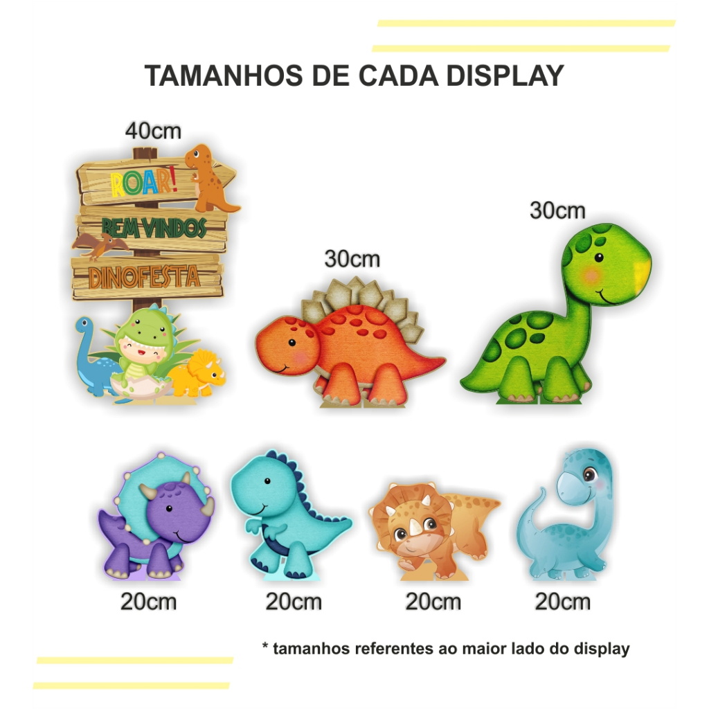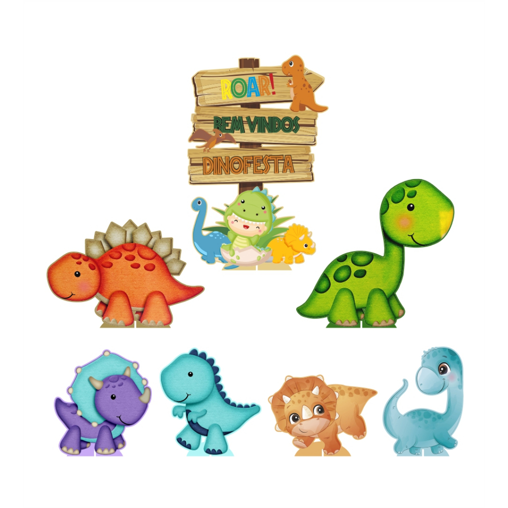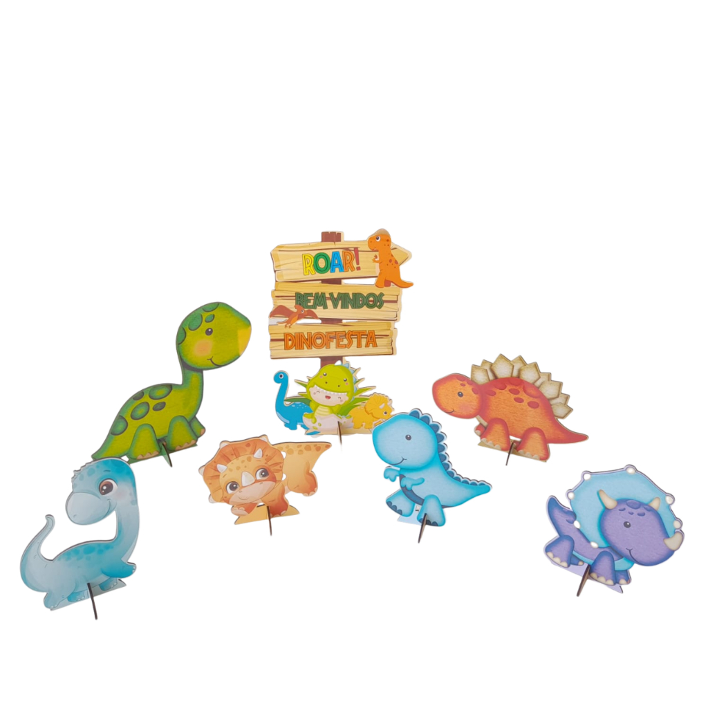 Display de Festa 7 peças Totens para decoração Dinossauro Dino Baby em MDF Cortado a Laser