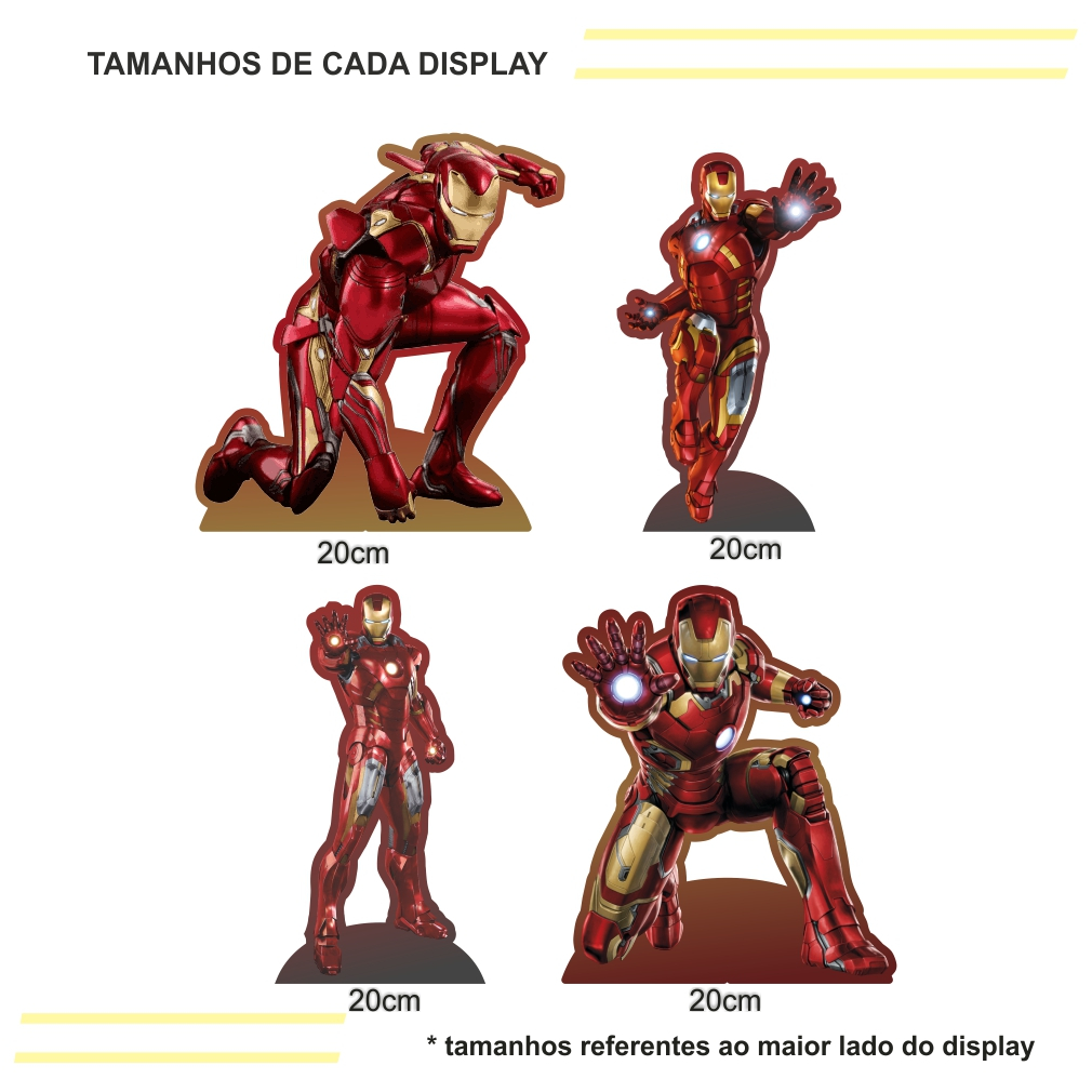 Kit de Display 4 de 20cm Totens para Decoração de Festa Homem de ferro em MDF Cortado a Laser