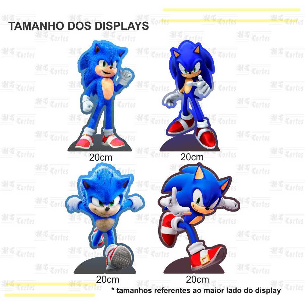 Kit de Display 4 de 20cm Totens para Decoração de Festa sonic em MDF Cortado a Laser