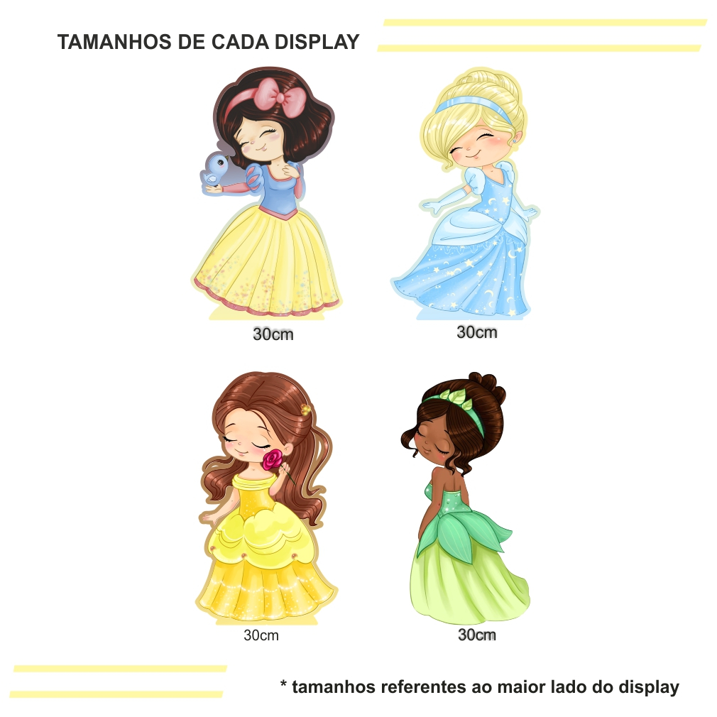 Kit Festa 4 Display de 30cm Totens para Decoração de Festa Princesas Disney Cute MDF Cortado a Laser