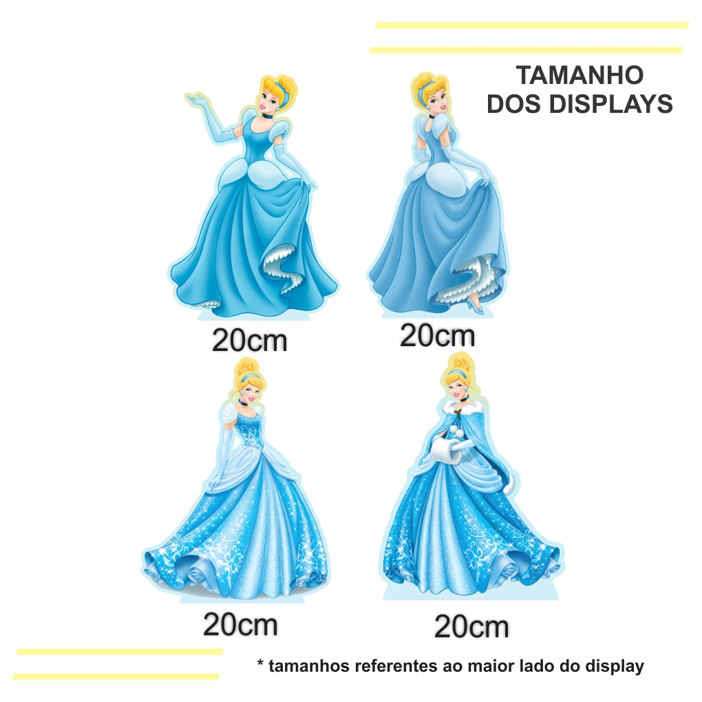 Kit de Display 4 de 20cm Totens para Decoração de Festa Cinderela em MDF Cortado a Laser