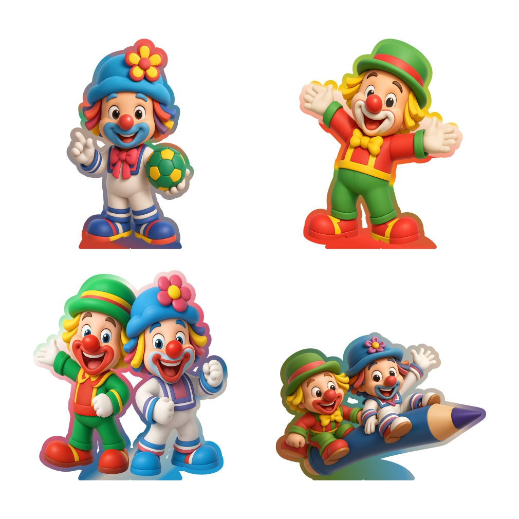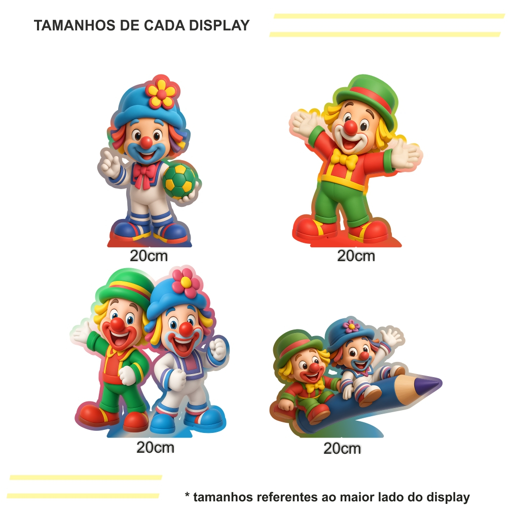 Kit de Display 4 de 20cm Totens para Decoração de Festa Patata Circo Patati em MDF Cortado a Laser