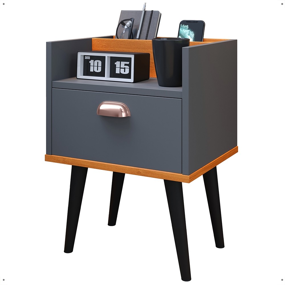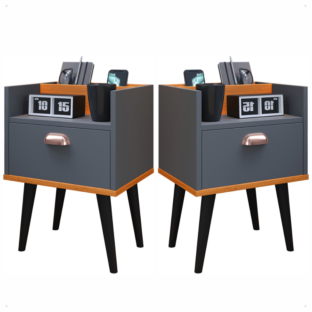 KIT 2 Mesa de Cabeceira com Gaveta Retrô Milena com Puxador Concha Varias Cores