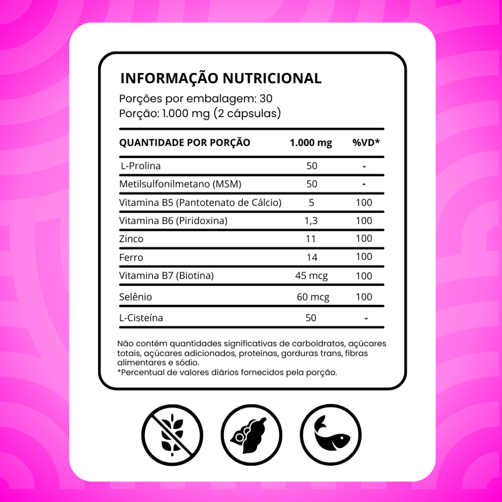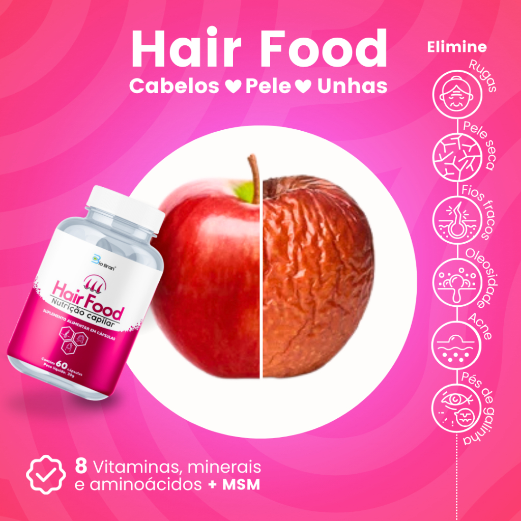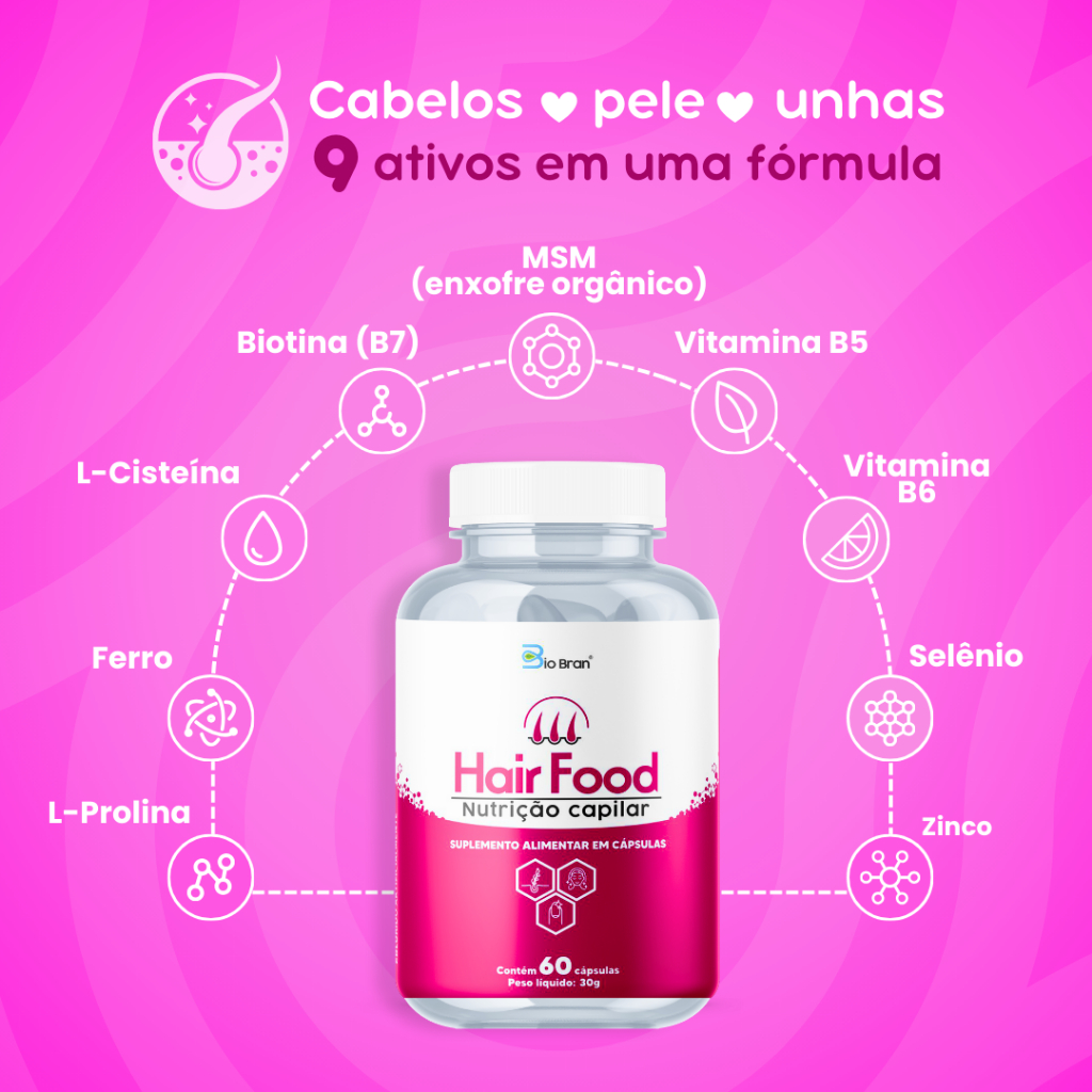 Vitamina para Cabelos, Pele e Unhas com Biotina, MSM e Minerais para Crescimento Capilar e Fortalecimento (60 cápsulas)