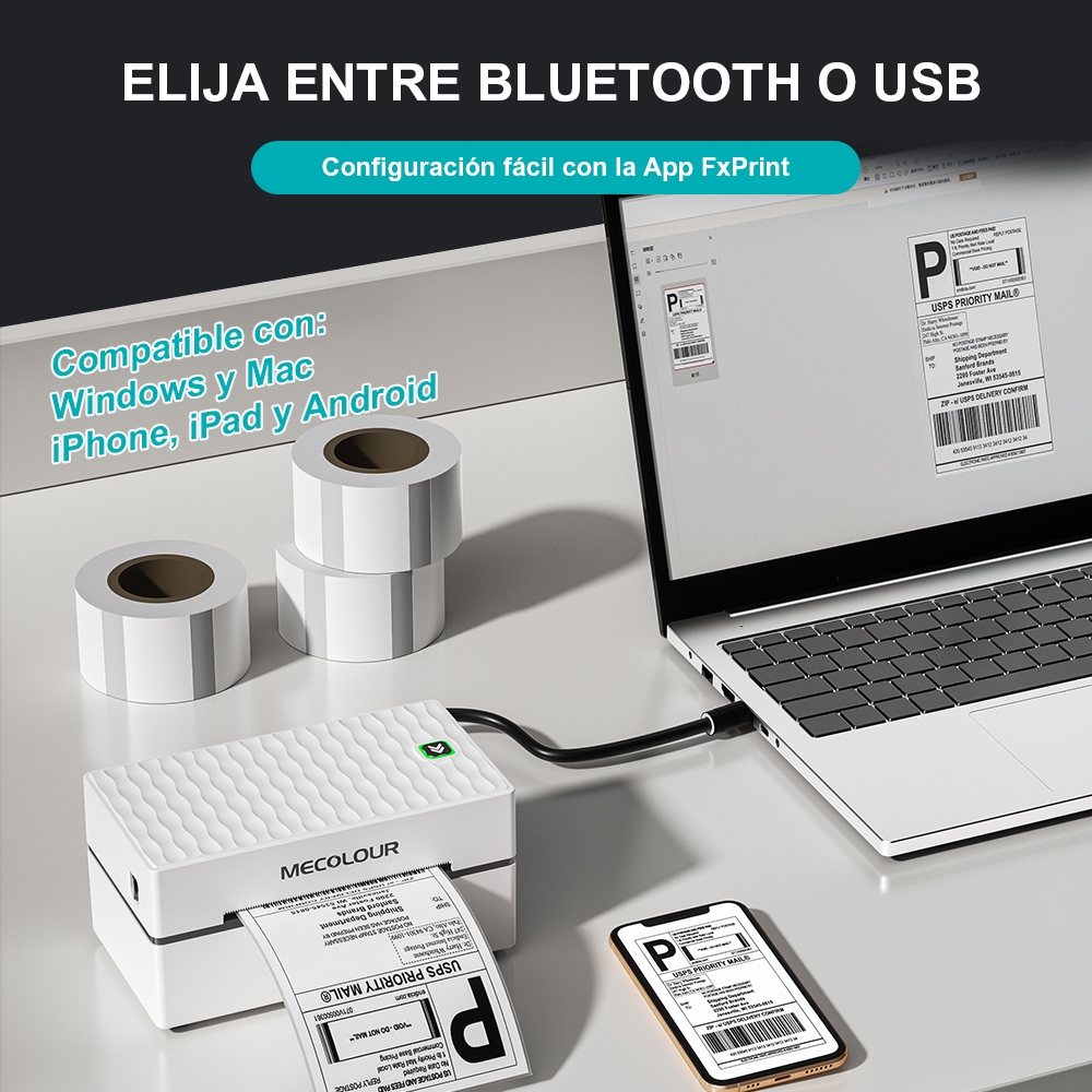 Impressora De Termica Etiquetas Portatil Branco Impressora De Etiquetas Usb Bluetooth 127/220v MECOLOUR