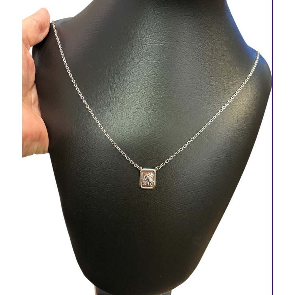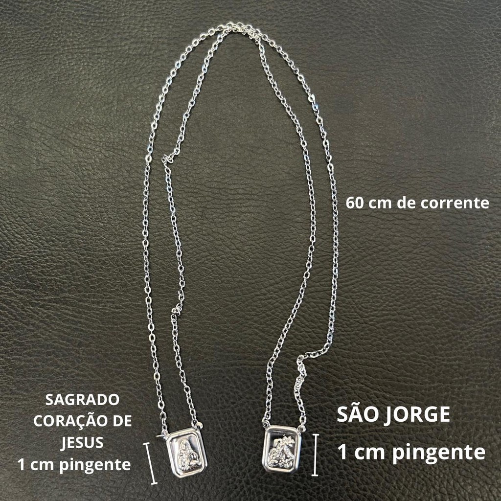 Colar Corrente Escapulário Em Aço Inox São Jorge 60 Cm Hipoalergênico