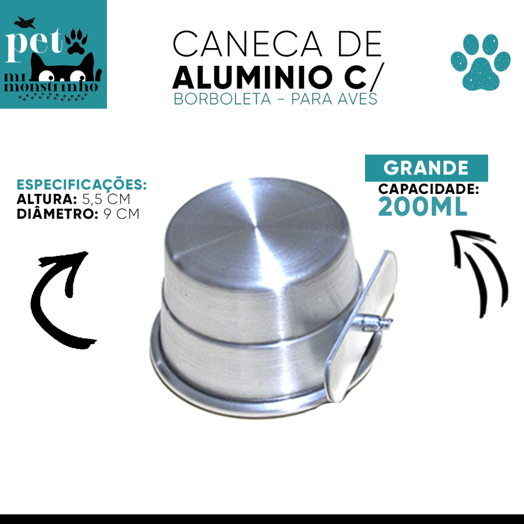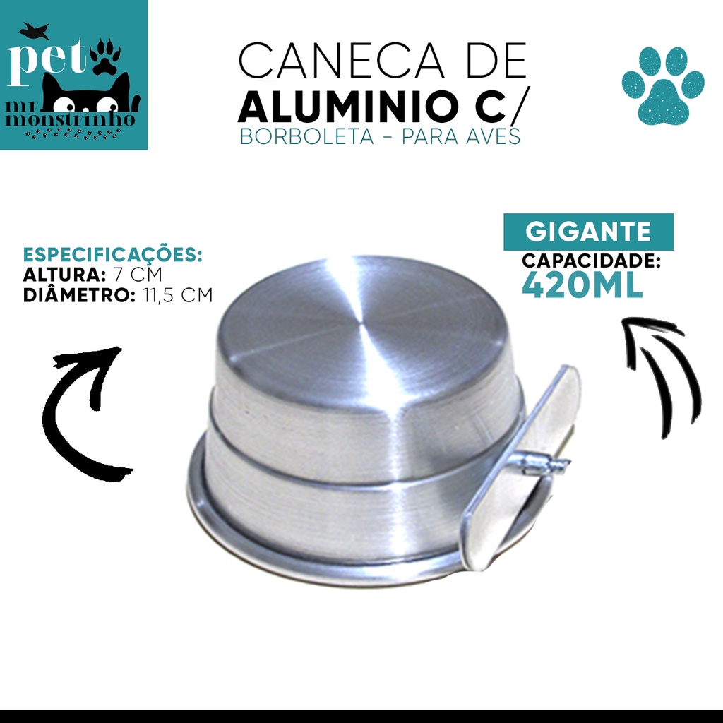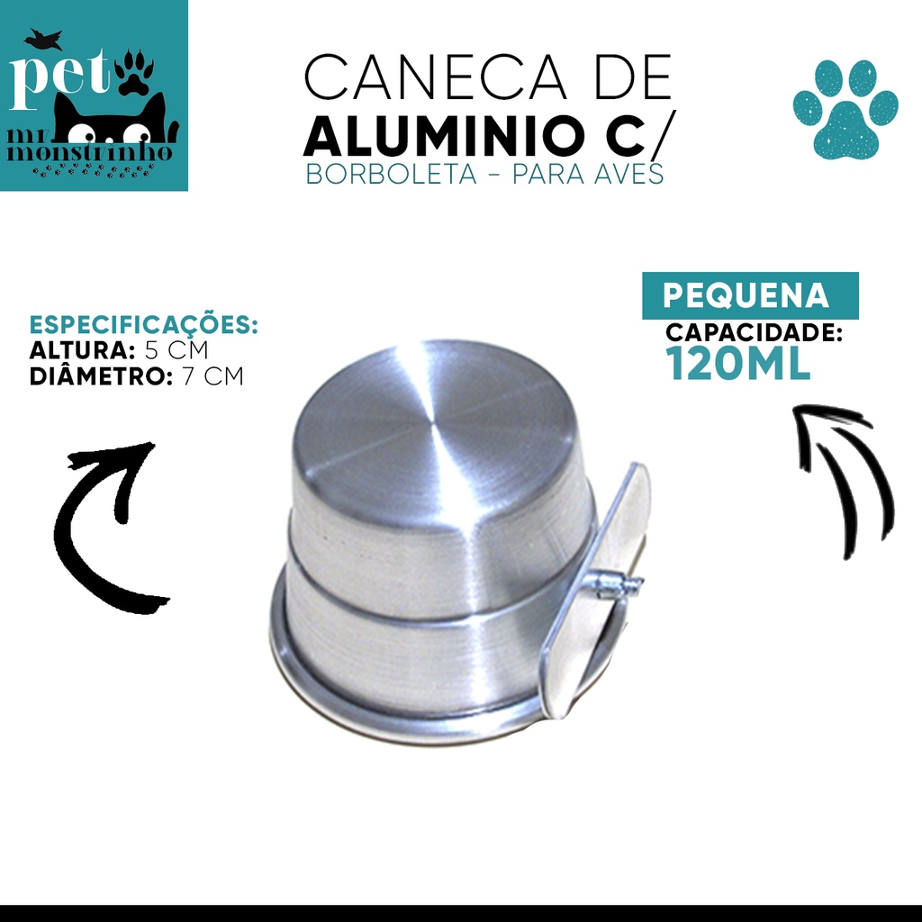 Kit Caneca de Alumínio Borboleta Comedouro para Pássaros - Pequena, Média, Grande Gigante