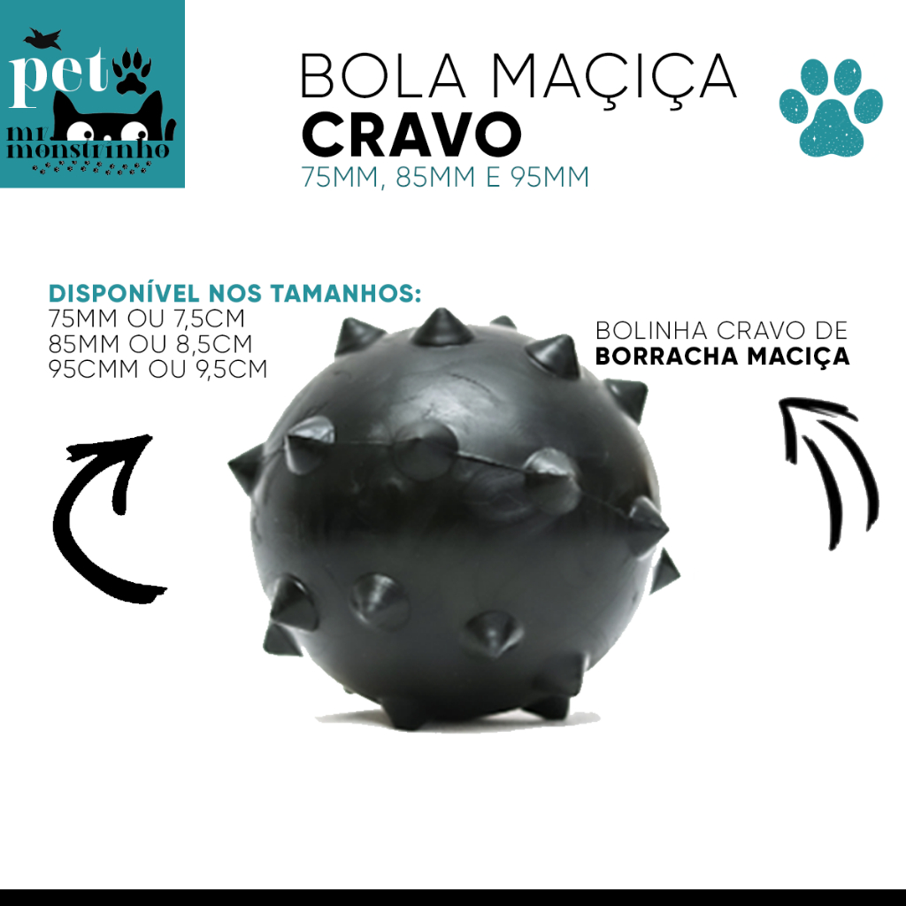 Kit 2un Bola Bolinha Cravo Maciça Resistente 75mm 85mm 95mm para Cachorro - Linha Black 2d Pet