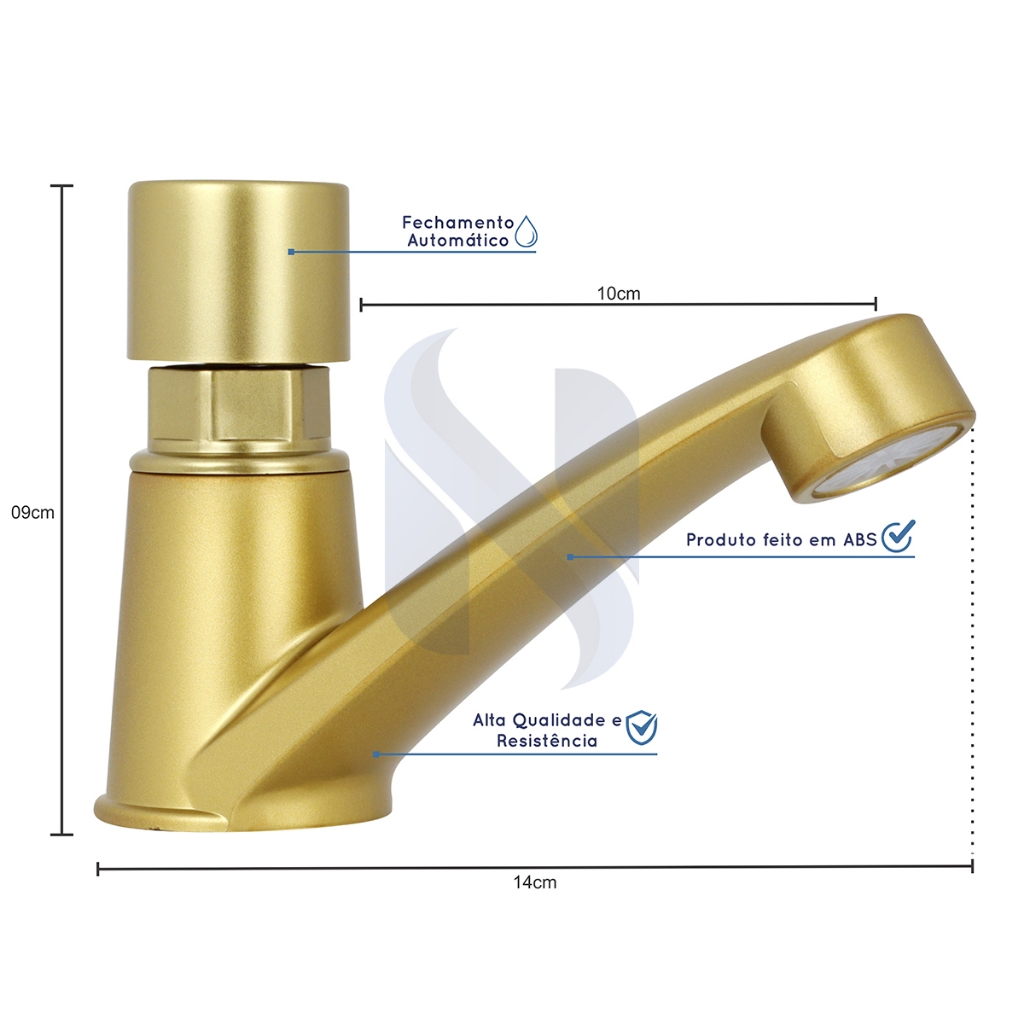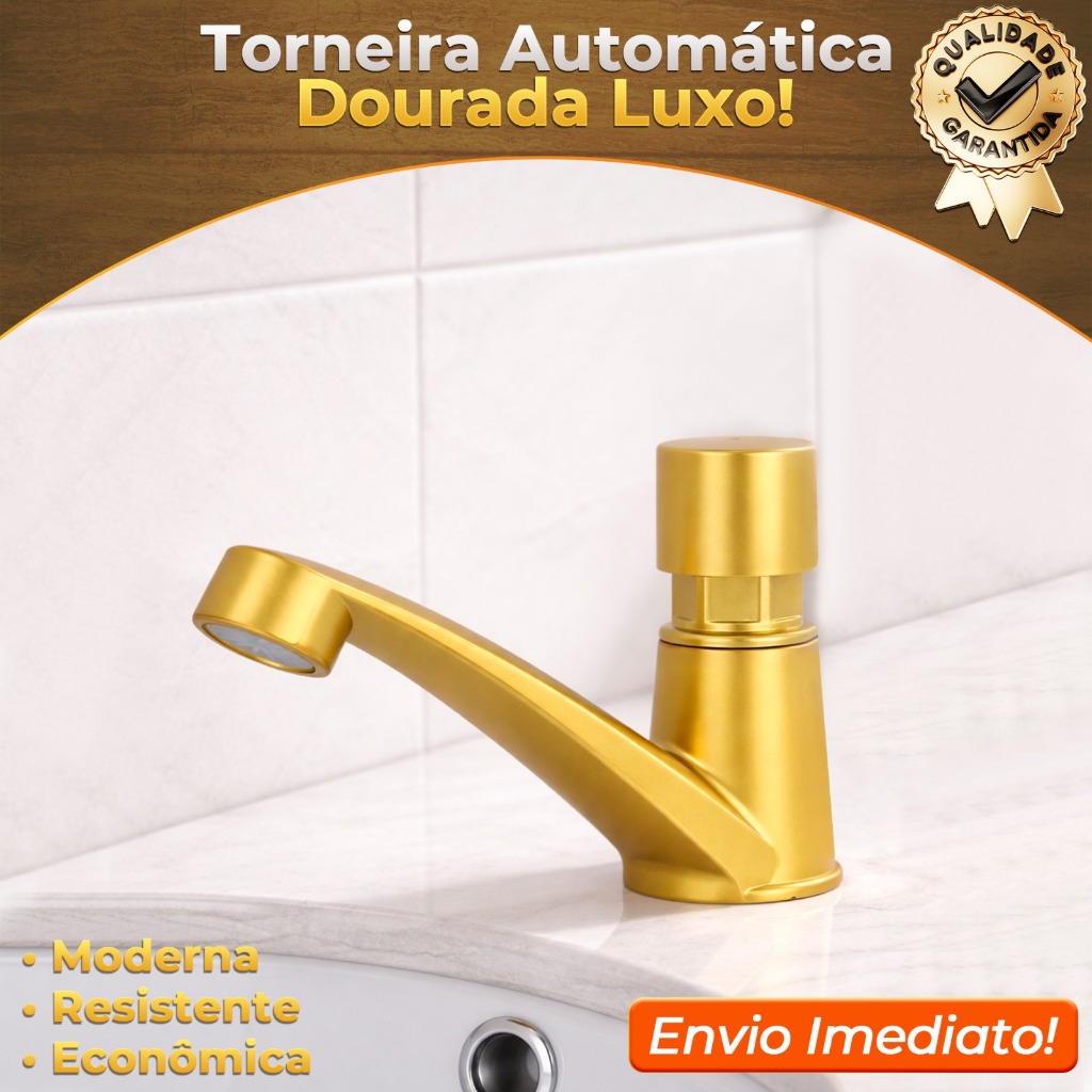 Torneira Automática Dourada Para Banheiros Em Abs Temporizador 30 Segundos
