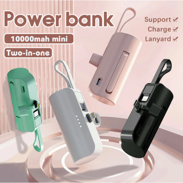 Carregador Portátil Mini Power Bank 10000mAh Com 02 Saídas Tipo-C / Lightning