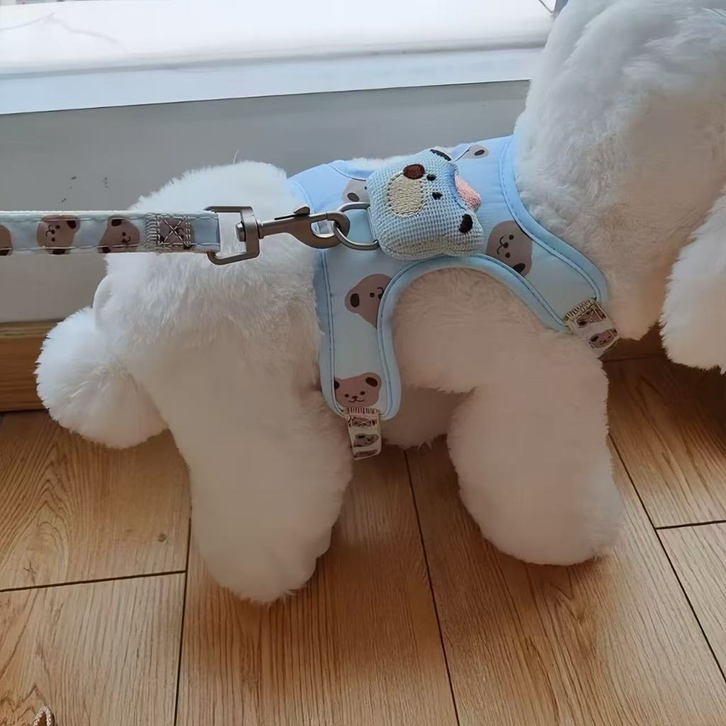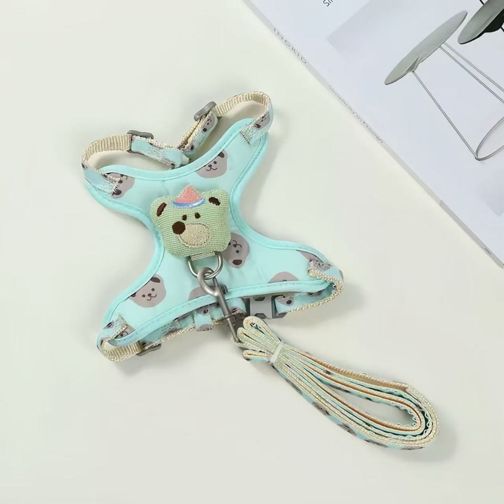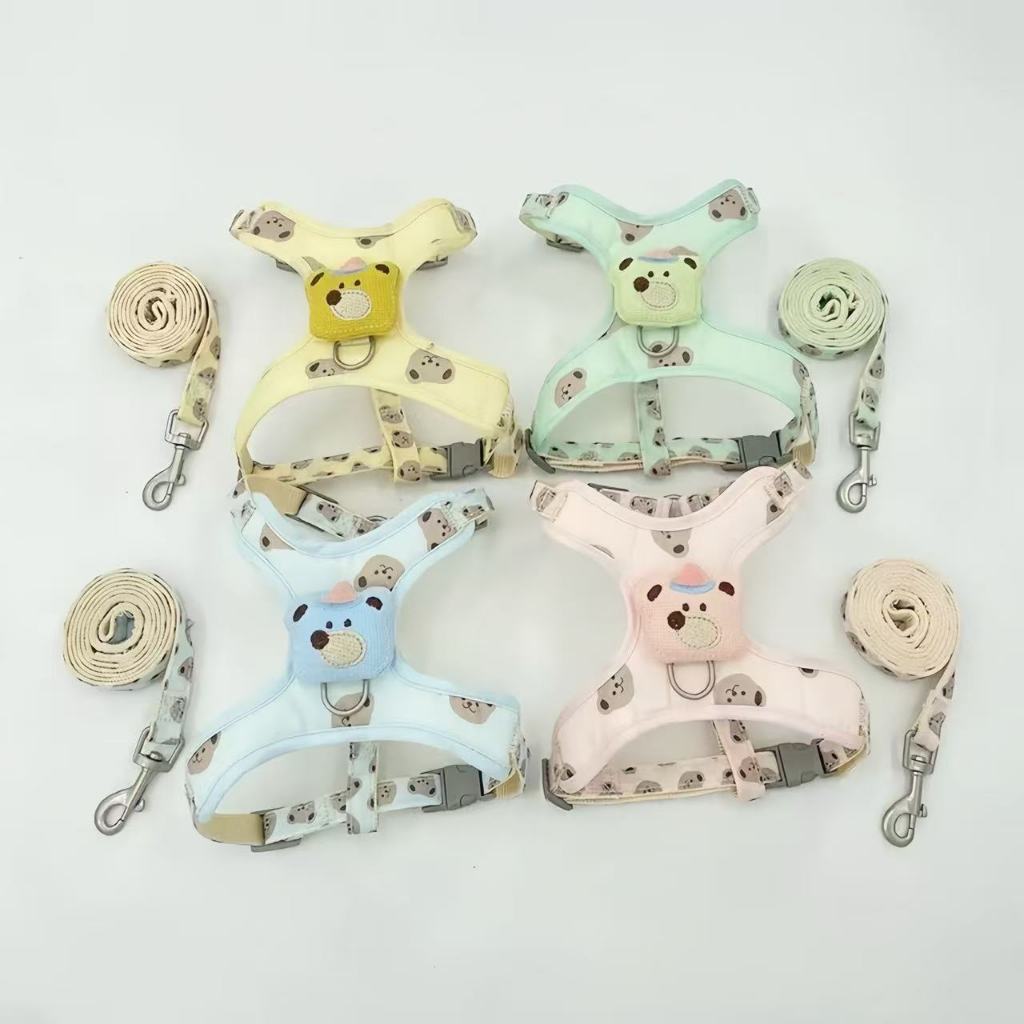 Coleira peitoral Colorida Desenho Ursinho Com Guia Para Cães cachorro e gatos e outros pets YP-2430