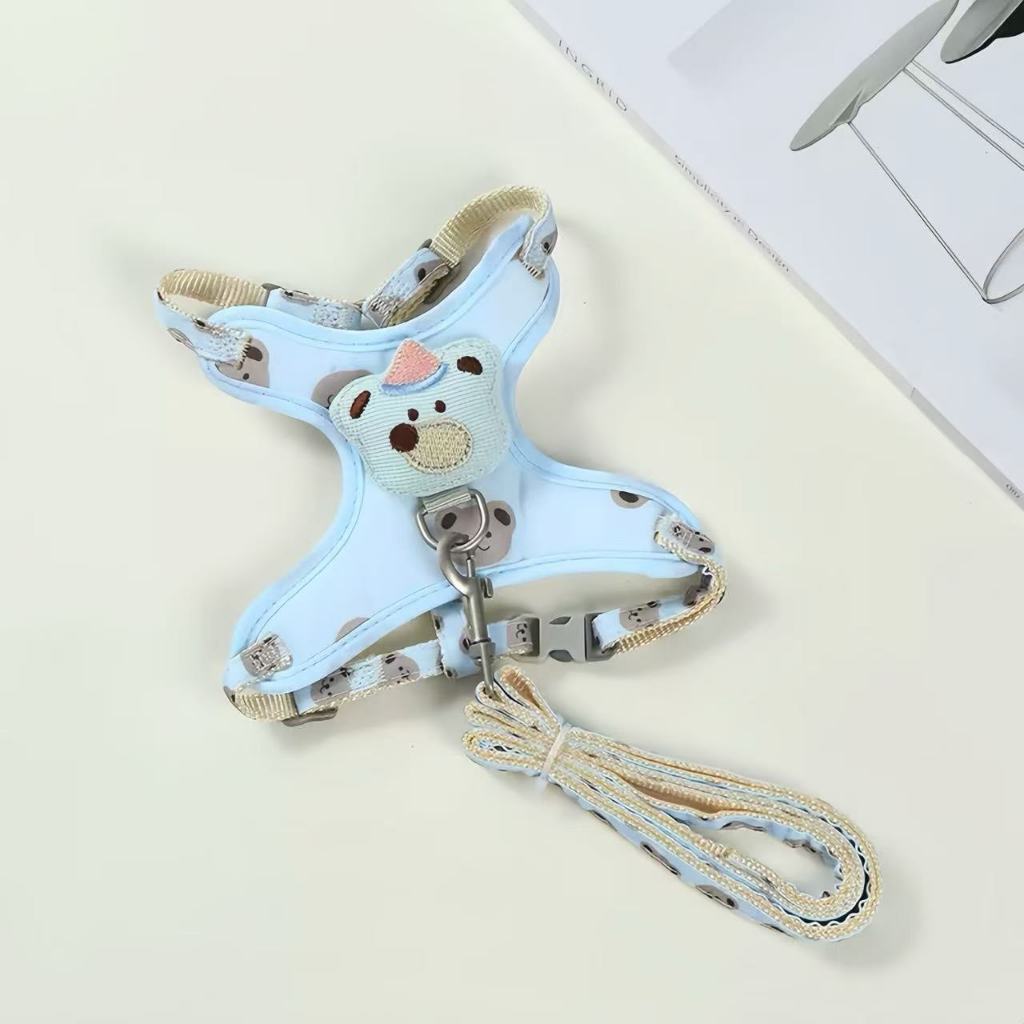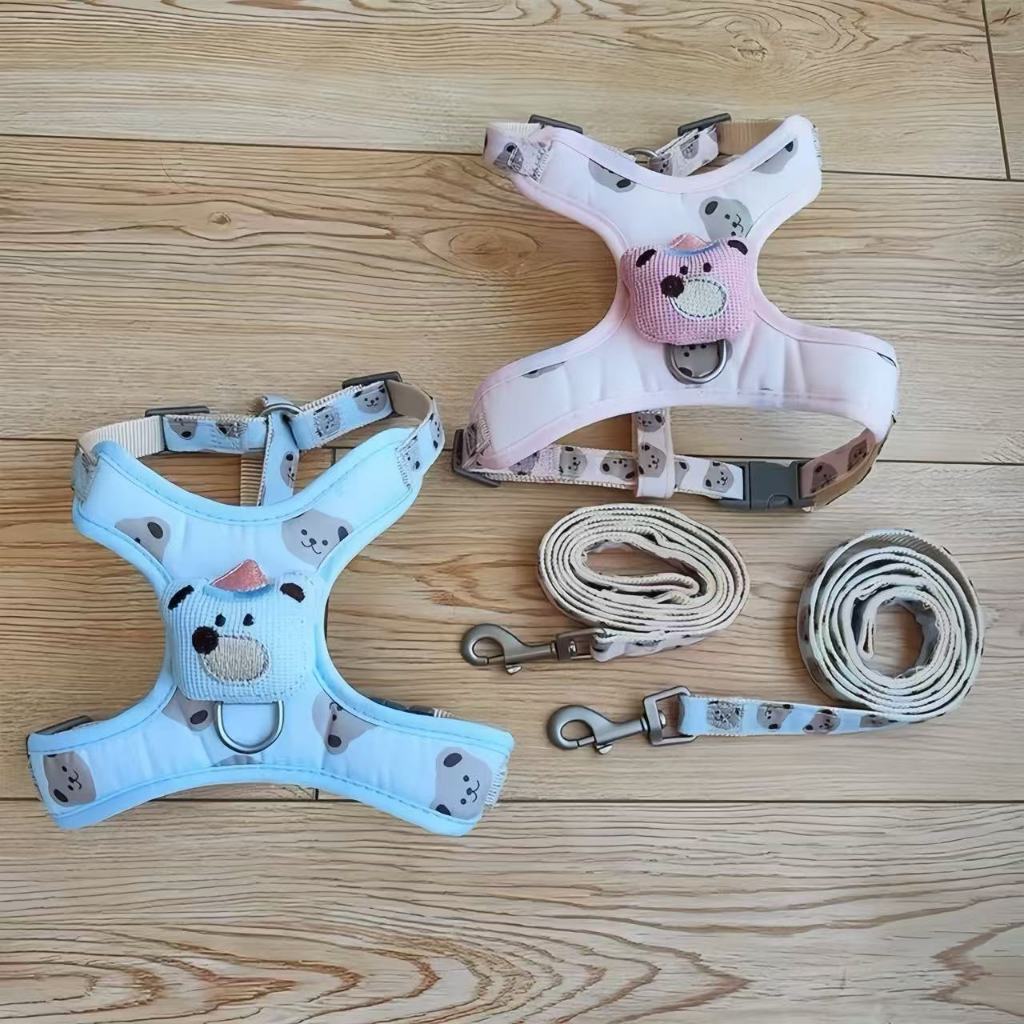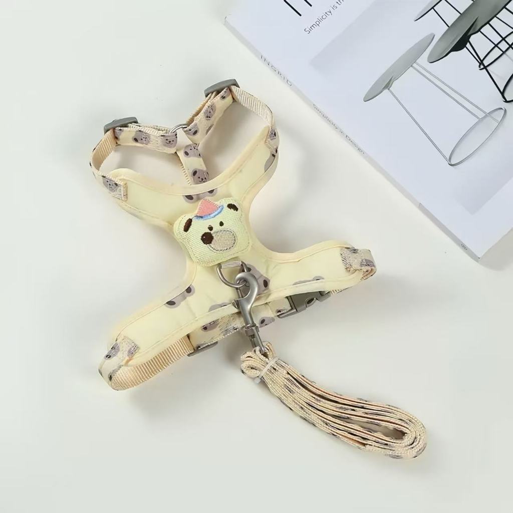 Coleira peitoral Colorida Desenho Ursinho Com Guia Para Cães cachorro e gatos e outros pets YP-2430