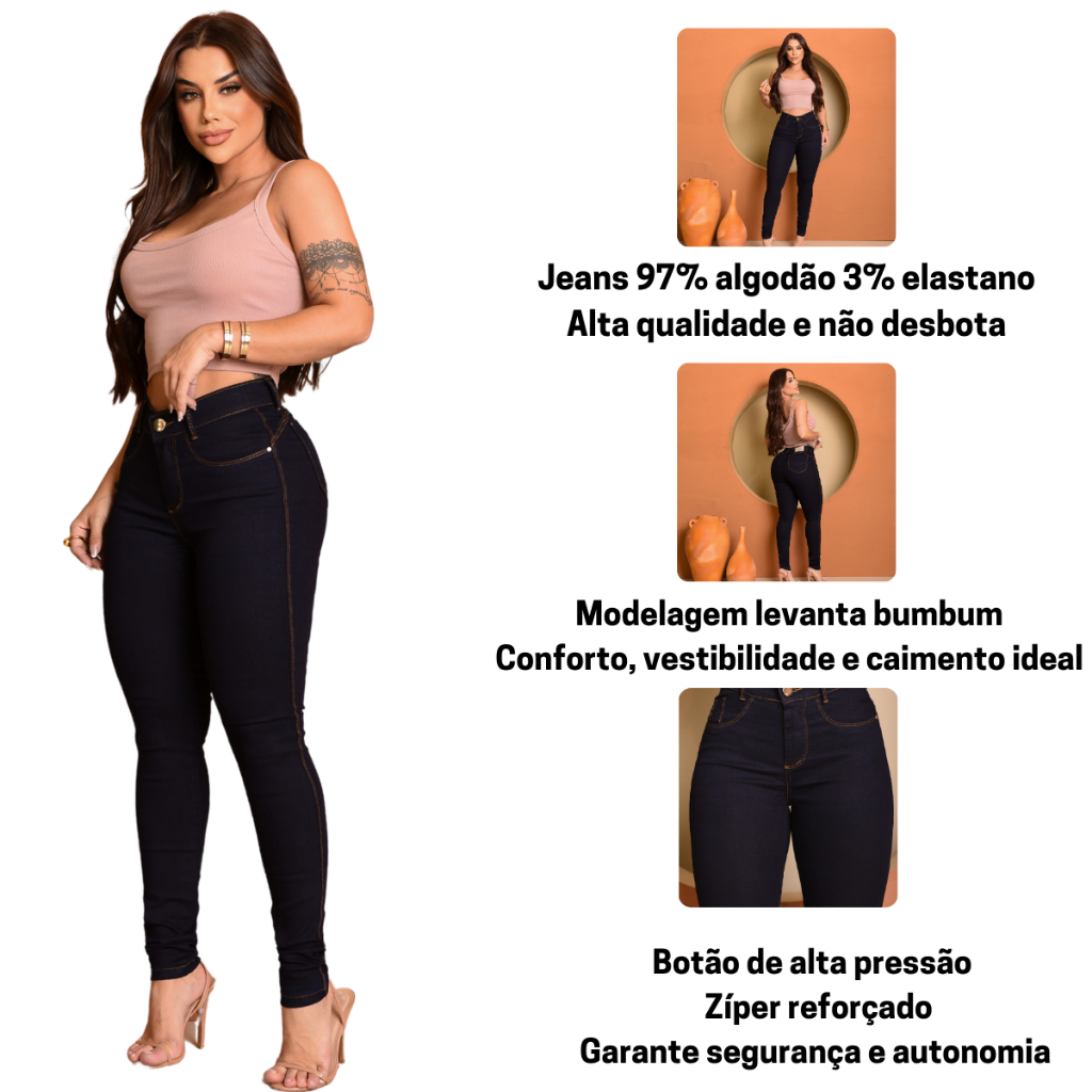 Calça Feminina Skinny Jeans Premium Cintura Alta Levanta Bumbum Modeladora